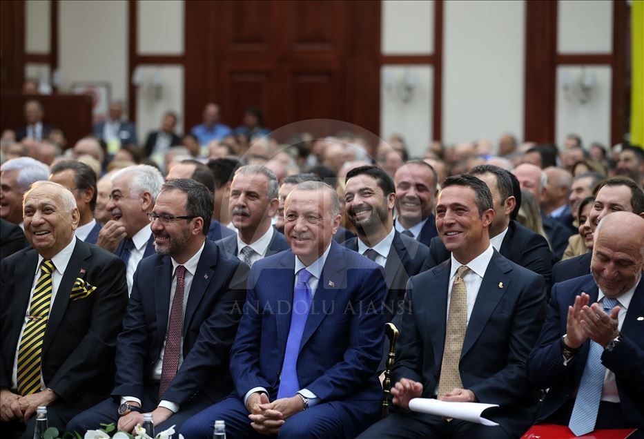 Türkiye Cumhurbaşkanı Recep Tayyip Erdoğan (ortada), Fenerbahçe Yüksek Divan Kurulu Olağan Toplantısı'na katıldı. Toplantıya Gençlik ve Spor Bakanı Mehmet Muharrem Kasapoğlu (solda) ve Fenerbahçe Spor Kulübü Başkanı Ali Koç da (sağda) katıldı. ( Cumhurbaşkanlığı / Murat Çetinmühürdar - Anadolu Ajansı )Cumhurbaşkanlığı / Murat Çetinmühürdar