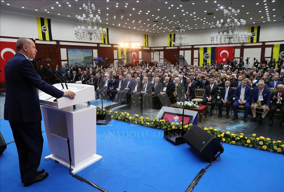 Türkiye Cumhurbaşkanı Recep Tayyip Erdoğan, Fenerbahçe Yüksek Divan Kurulu Olağan Toplantısı'na katılarak konuşma yaptı. ( Cumhurbaşkanlığı / Murat Çetinmühürdar - Anadolu Ajansı )Cumhurbaşkanlığı / Murat Çetinmühürdar