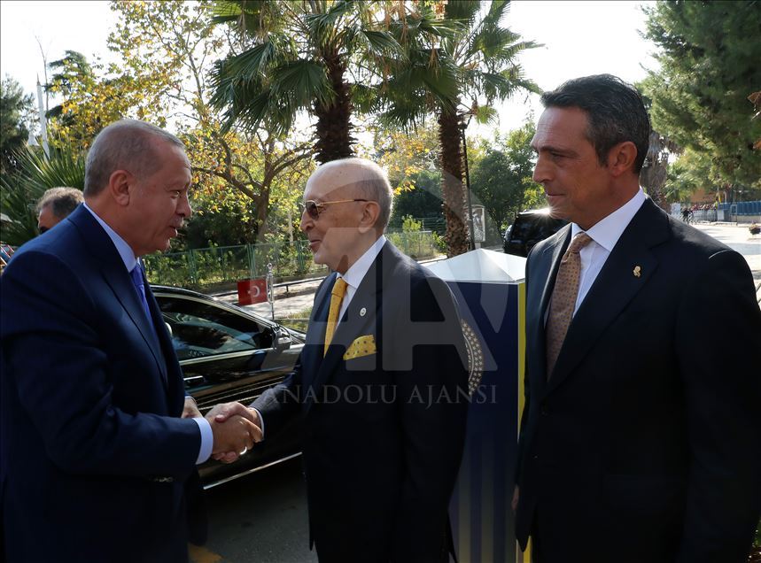 Türkiye Cumhurbaşkanı Recep Tayyip Erdoğan, Fenerbahçe Yüksek Divan Kurulu Olağan Toplantısı'na katıldı. Gençlik ve Spor Bakanı Muharrem Kasapoğlu, Fenerbahçe Spor Kulübü Yüksek Divan Kurulu başkanı Vefa Küçük ve Fenerbahçe Kulübü Başkanı Ali Koç, Cumhurbaşkanı Erdoğan'ı kapıda karşıladı. ( Murat Çetinmühürdar/Cumhurbaşkanlığı - Anadolu Ajansı )Murat Çetinmühürdar/Cumhurbaşkanlığı