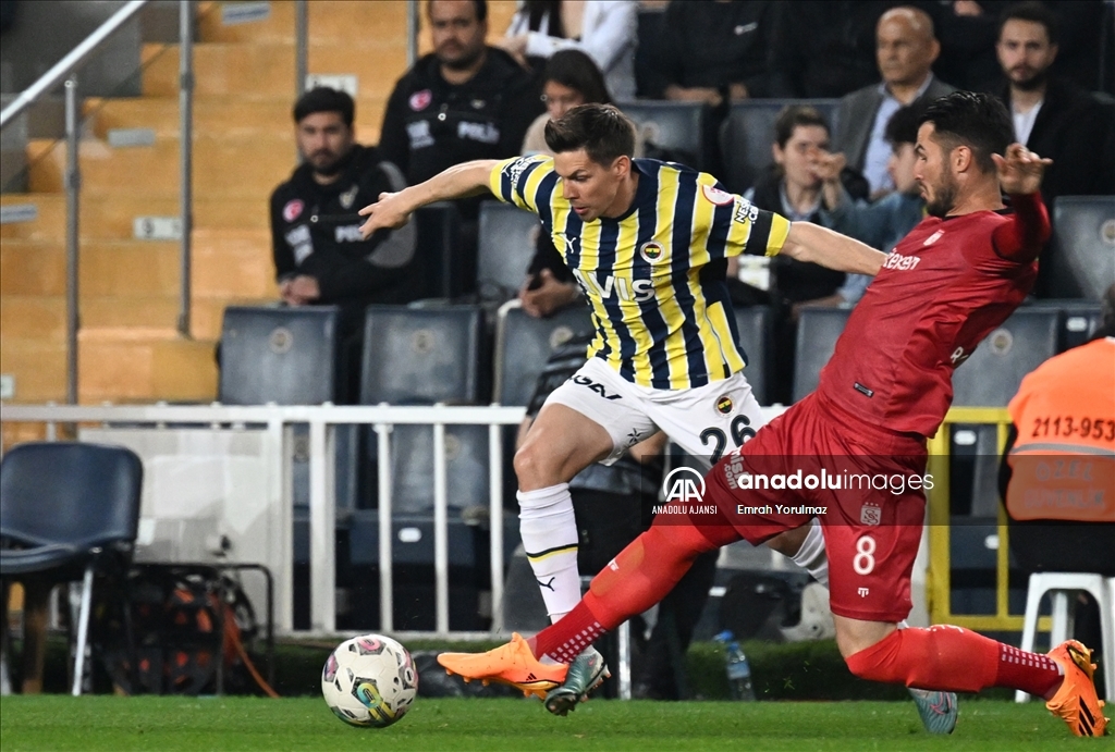 Fenerbahçe, Ziraat Türkiye Kupasının yarı final rövanş maçında Demir Grup Sivasspor ile Ülker Stadı’nda karşılaştı. Bir pozisyonda Fenerbahçeli Miha Zajc (solda), Demir Grup Sivasspor oyuncusu Robin Yalcin (sağda) ile mücadele etti. ( Emrah Yorulmaz - Anadolu Ajansı )Emrah Yorulmaz