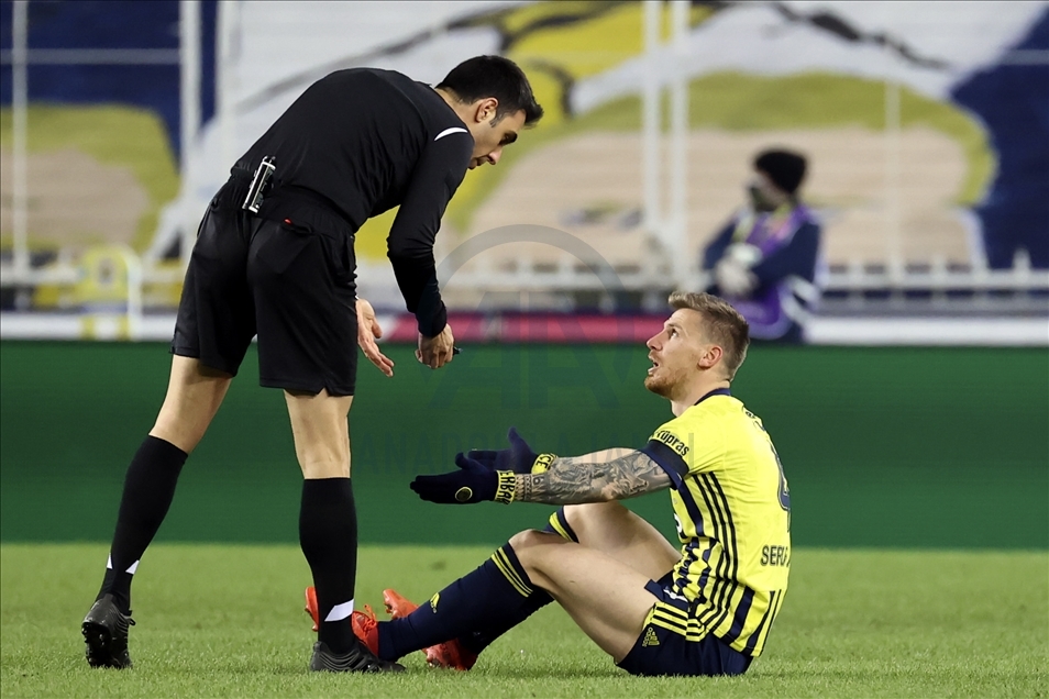 Fenerbahçe, Süper Lig'in 19. hafta maçında MKE Ankaragücü ile Ülker Stadı'nda karşılaştı. Fenerbahçeli oyuncu Serdar Aziz (sağda) bir pozisyon sonrası mücadelenin hakemi Arda Kardeşler'e (solda) itiraz etti. ( Serhat Çağdaş - Anadolu Ajansı )Serhat Çağdaş