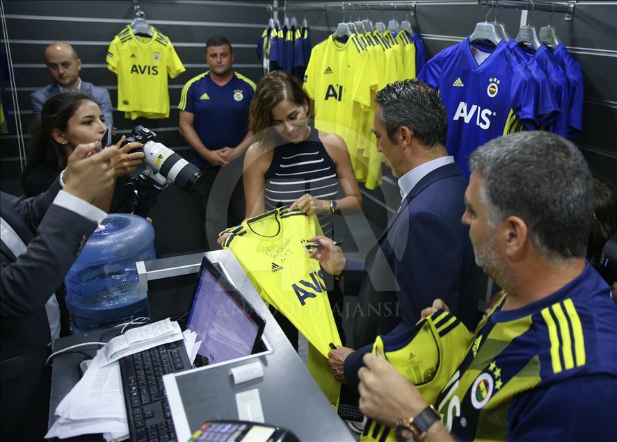 Fenerbahçe Kulübü, Futbol A Takımı'nın 2019-2020 sezonunda giyeceği formaları, Dereağzı Lefter Küçükandonyadis Tesisleri'nde gerçekleştirdiği organizasyonla basına tanıttı. Fenerbahçe Kulübü Başkanı Ali Koç (sağ 2), tanıtıma katılarak forma imzaladı. ( Emrah Yorulmaz - Anadolu Ajansı )Emrah Yorulmaz