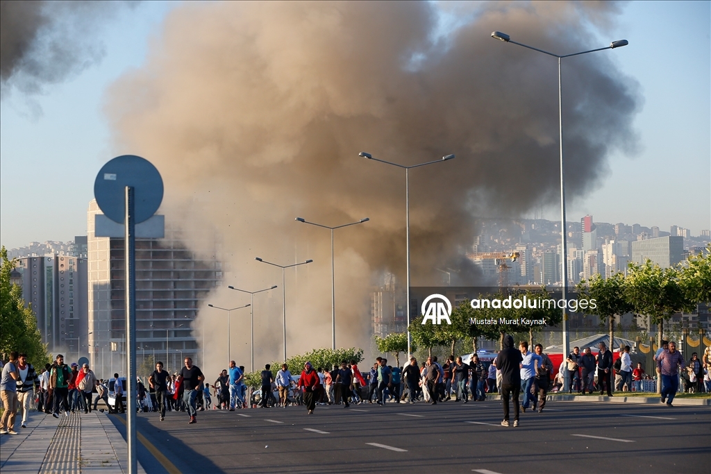 FETÖ mensubu pilotların kullandığı savaş uçakları Cumhurbaşkanlığı Külliyesi önünde bekleyen vatandaşlara attıkları bombanın patlama anı fotoğraflanmıştı. (Mustafa Murat Kaynak - 16.07.2016) ) (Mustafa Murat Kaynak - Anadolu Ajansı)Mustafa Murat Kaynak