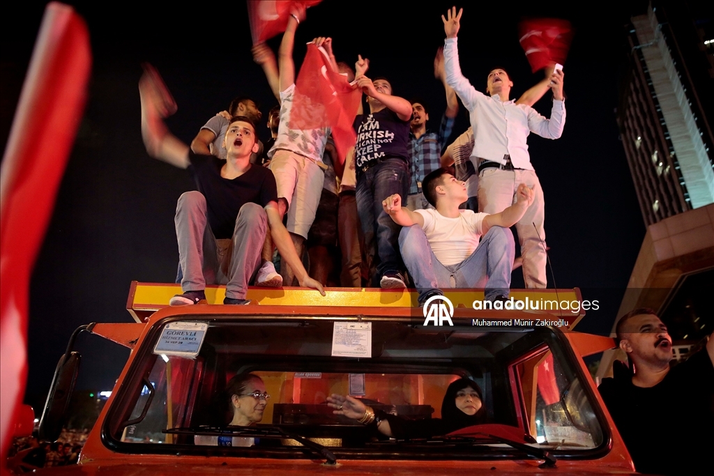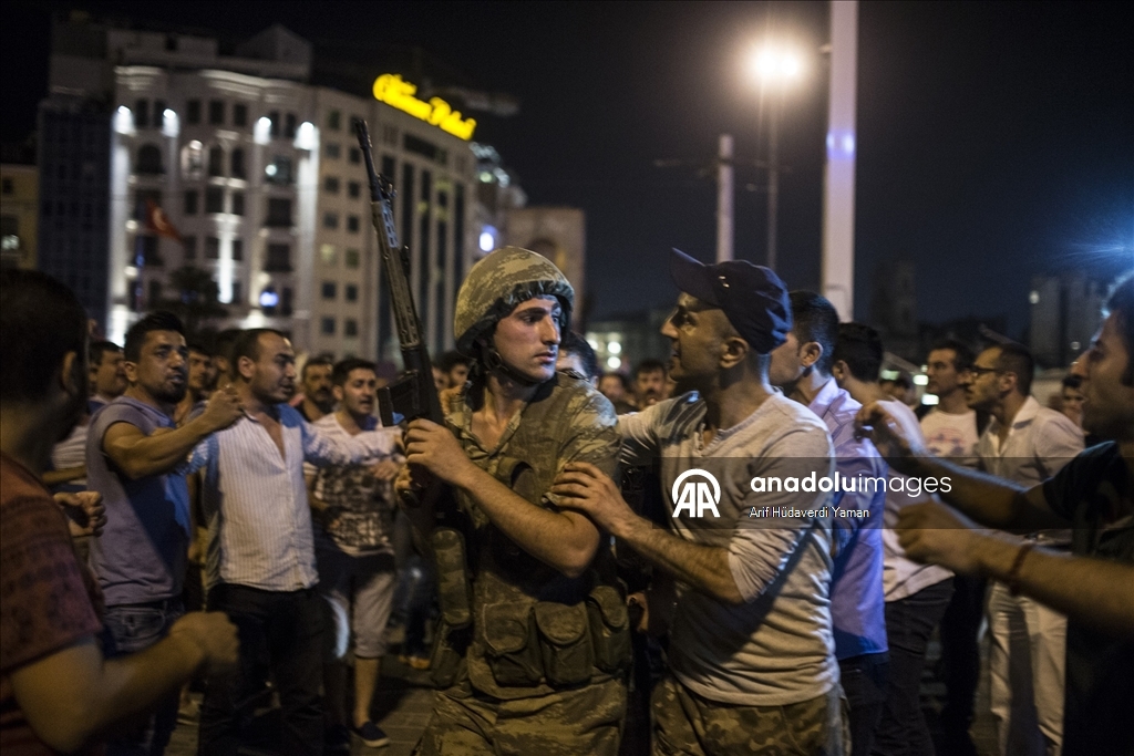 İstanbul Taksim Meydanı'nda toplanan vatandaşlar, İstanbul'daki "askeri kalkışmaya" tepki göstermişti. (Arif Hüdaverdi Yaman - 16.07.2016) (Arif Hüdaverdi Yaman - Anadolu Ajansı)Arif Hüdaverdi Yaman