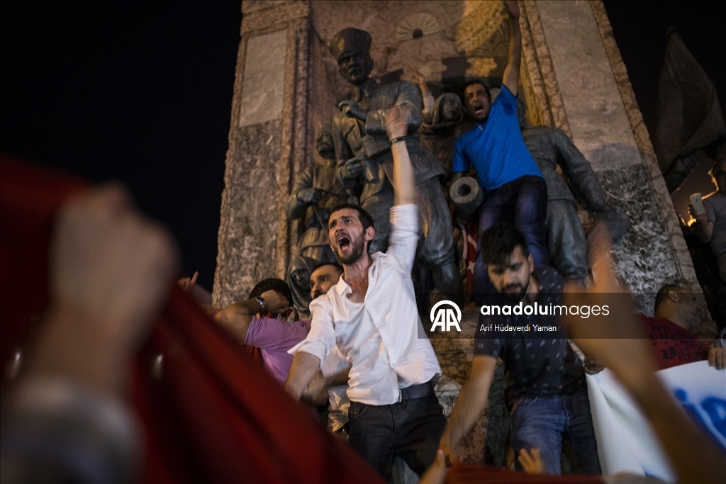 Darbe girişimi sırasında İstanbul'da Taksim Anıtı'nın önünde toplanan vatandaşlar, darbecilere tepki göstermişti. (Arif Hüdaverdi Yaman - 16.07.2016) (Arif Hüdaverdi Yaman - Anadolu Ajansı)Arif Hüdaverdi Yaman