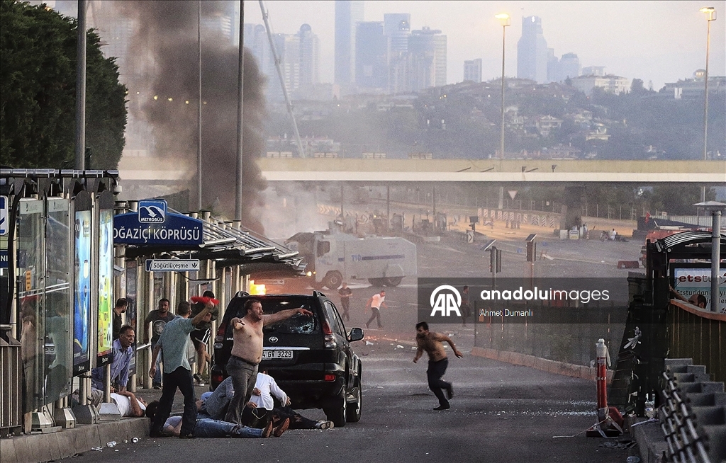 Darbe girişimi nedeniyle tanklar tarafından kapatılan Boğaziçi Köprüsü'nde bazı vatandaşlar yaralanmıştı.(Ahmet Dumanlı - 16.07.2016) (Ahmet Dumanlı - Anadolu Ajansı)Ahmet Dumanlı