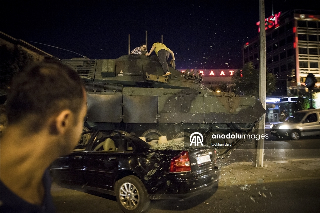 Vatandaşlar, Fethullahçı Terör Örgütü'nün (FETÖ) darbe girişimine karşı tankların üstüne çıkarak tepki göstermişti. (Gökhan Balcı - 16.07.2016) (Gökhan Balcı - Anadolu Ajansı)Gökhan Balcı