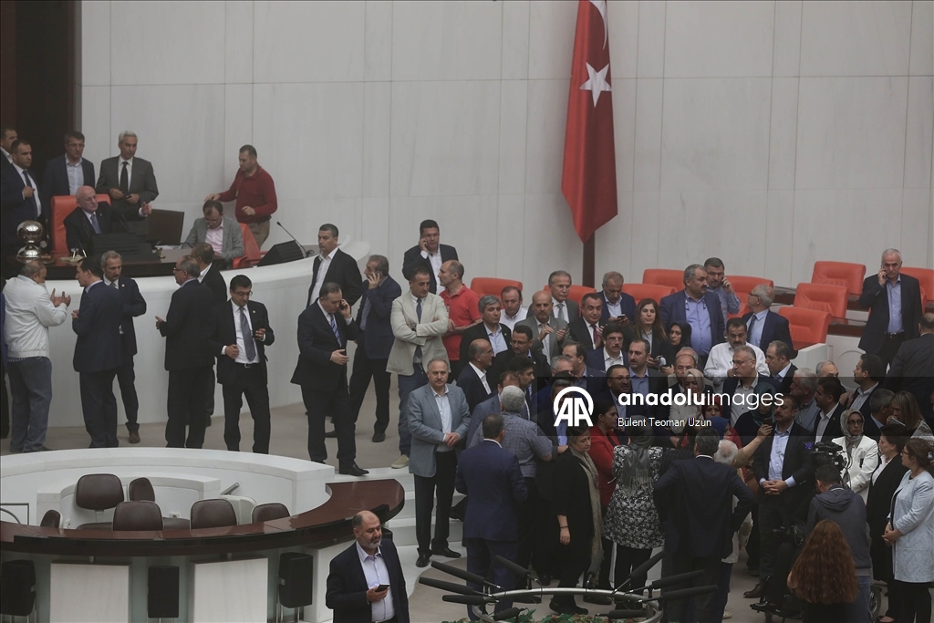 FETÖ'nün darbe girişimine karşı dün geceden beri TBMM'de bekleyen milletvekilleri, Meclis Başkanı İsmail Kahraman başkanlığında bir araya gelmiş, AK Parti, CHP ve MHP milletvekilleri Meclis'e gelerek Genel Kurul Salonu'nda toplanmıştı. (Bülent Teoman Uzun - 16.07.2016) (Bülent Teoman Uzun - Anadolu Ajansı)Bülent Teoman Uzun