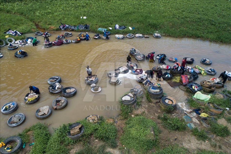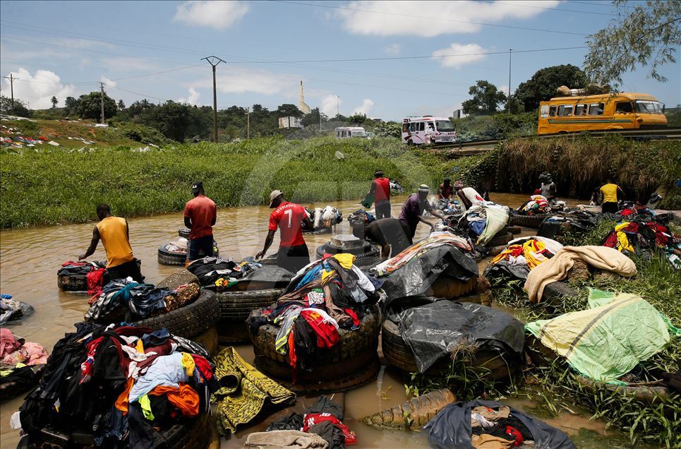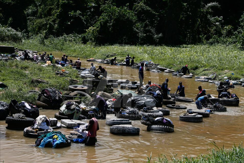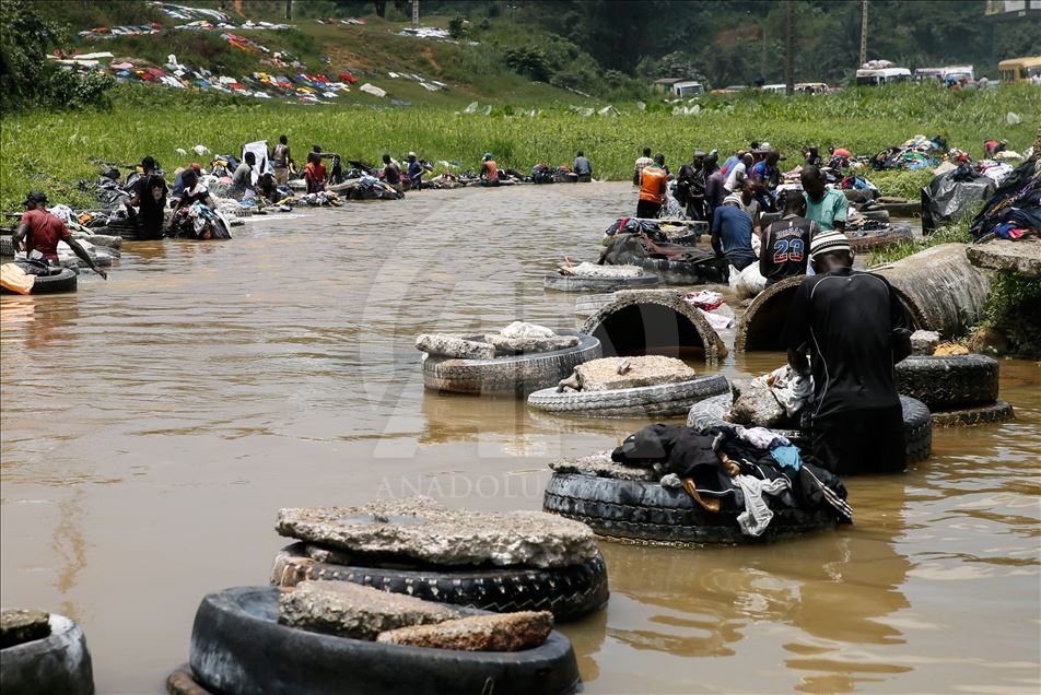 Fildişi Sahili'nin Abidjan kentinde bulunan Banco Ulusal Parkı içerisindeki Banco Nehri, geçimlerini çamaşır yıkayarak sağlayan "Fanico"lara ev sahipliği yapıyor.