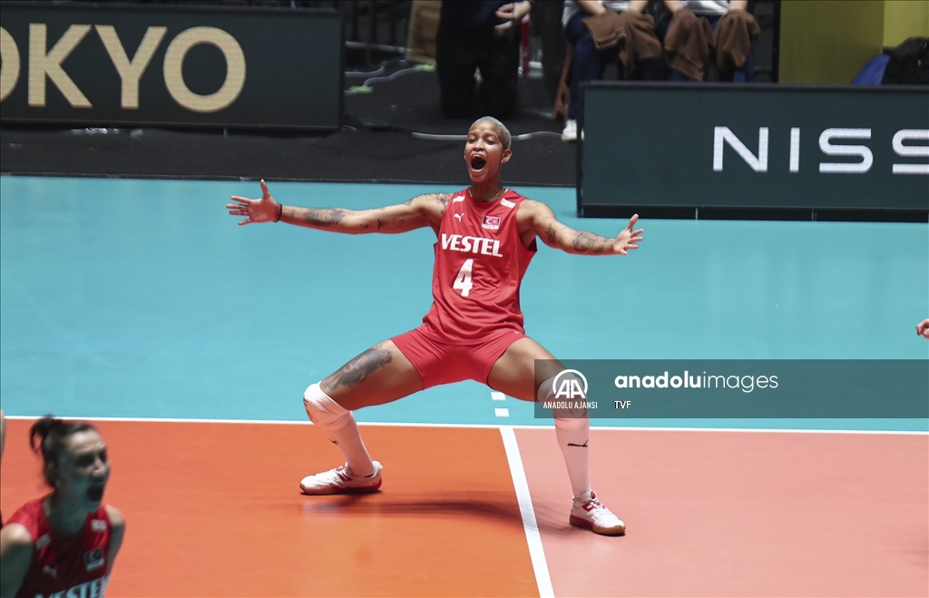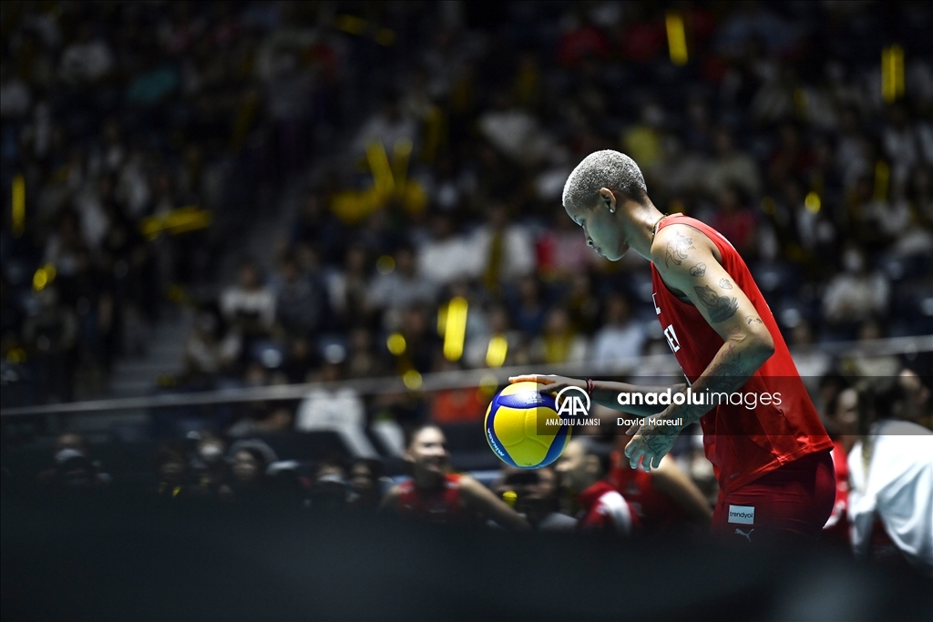 Türkiye Kadın Milli Voleybol takımı, 2024 Paris Olimpiyat elemeleri maçlarının beşinci gününde, Japonya'nın başkenti Tokyo'daki Yoyogi Ulusal Spor Salonu'nda Brezilya ile karşılaştı. Milli oyuncu Melissa Teresa Vargas (4), karşılaşmada mücadele etti. ( David Mareuil - Anadolu Ajansı )David Mareuil