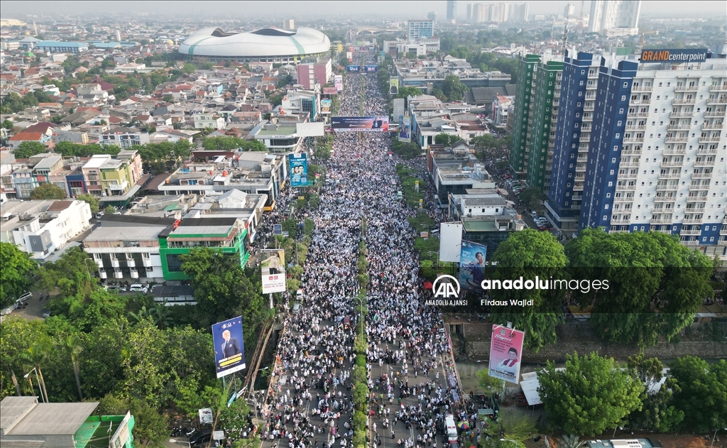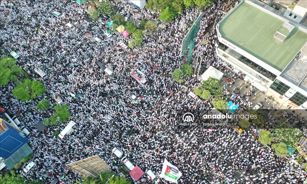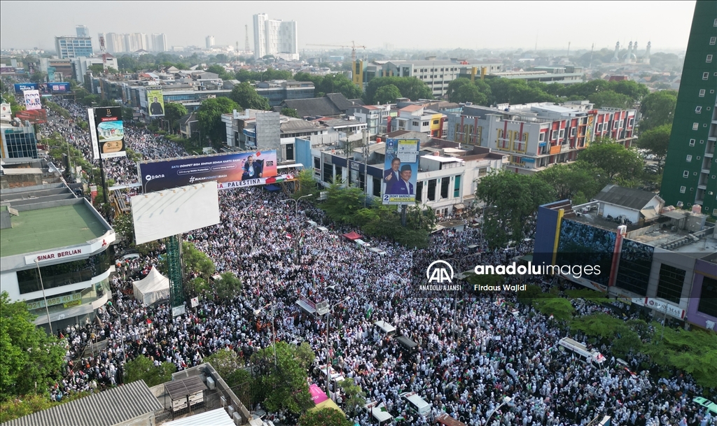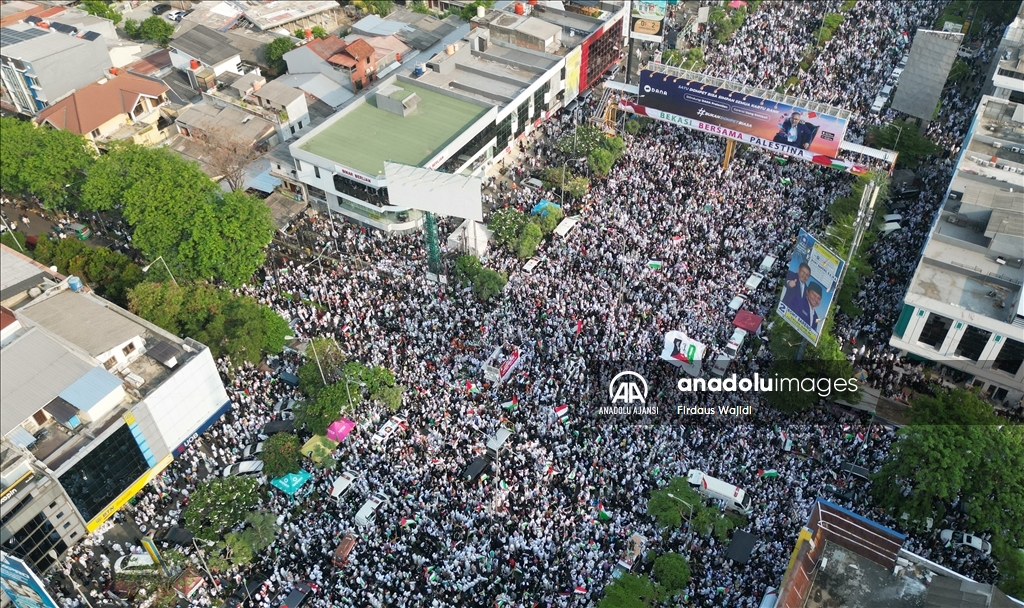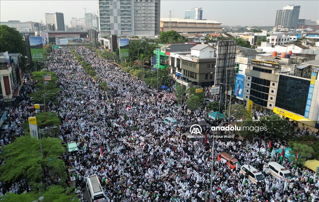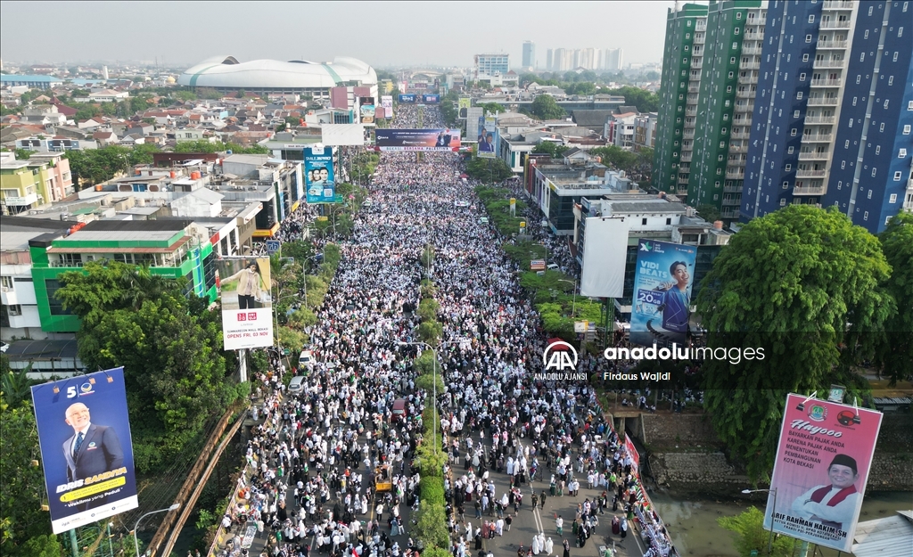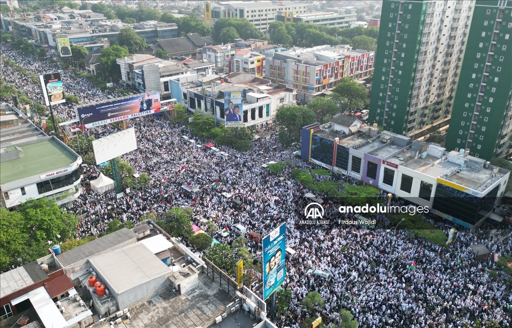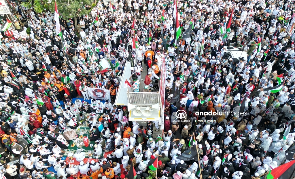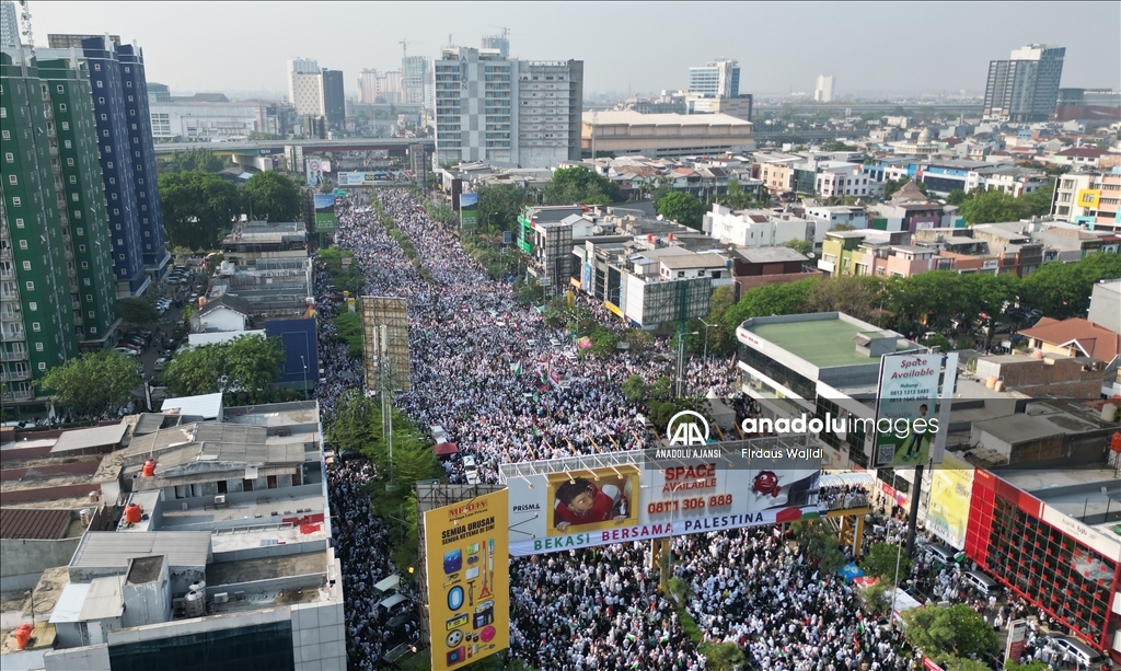 Endonezya'nın Batı Java bölgesindeki Bekasi şehrinde binlerce kişi Filistin'e destek gösterisi düzenledi. Ahmad Yani Caddesi'nde toplanan göstericiler, İsrail'in saldırılarına karşı Filistin'e destek mesajı verdi. ( Firdaus Wajidi - Anadolu Ajansı )Firdaus Wajidi