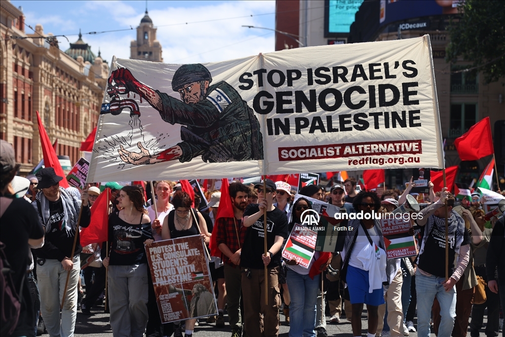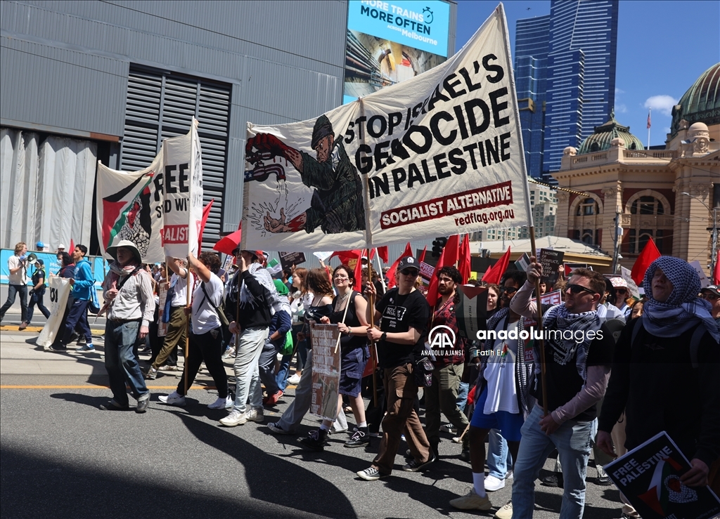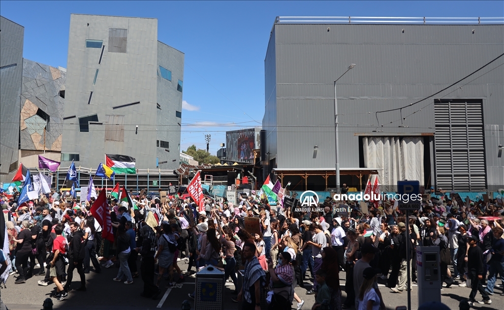 Avustralya'nın Melbourne kentinde yaklaşık 100 bin kişi Filistin'e destek gösterisi düzenledi. Melbourne Kütüphanesi önünde toplanan göstericiler, Filistin bayrakları ve pankartlar taşıyarak Filistin'e desteklerini gösterdi. ( Fatih Er - Anadolu Ajansı )Fatih Er