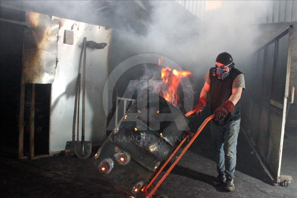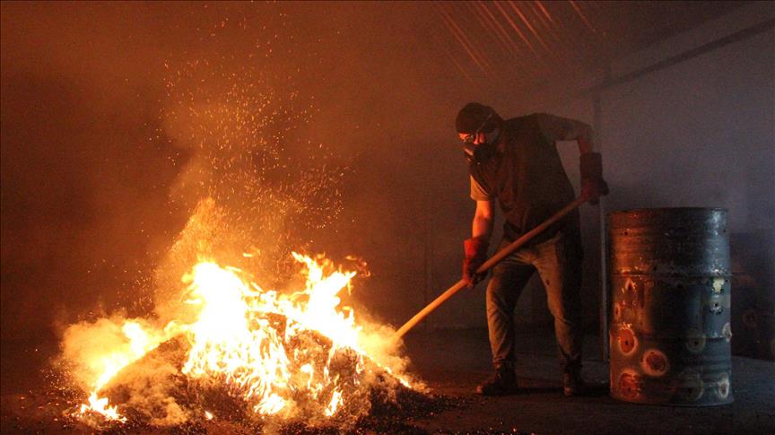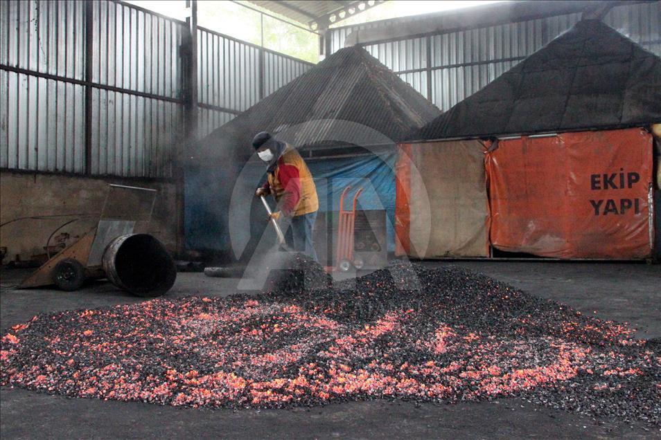 Ordu'nun Ünye ilçesindeki bir tesiste, 10 ton fındık kabuğundan günde 3 ton mangal kömürü üretiliyor. ( Hacer Öztürk - Anadolu Ajansı )