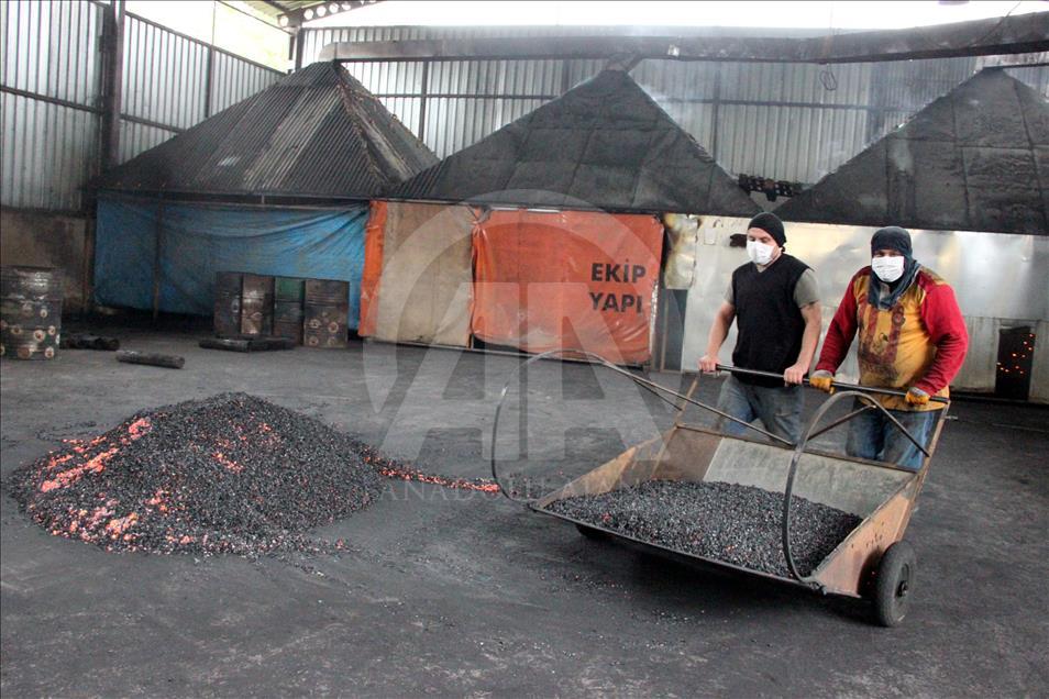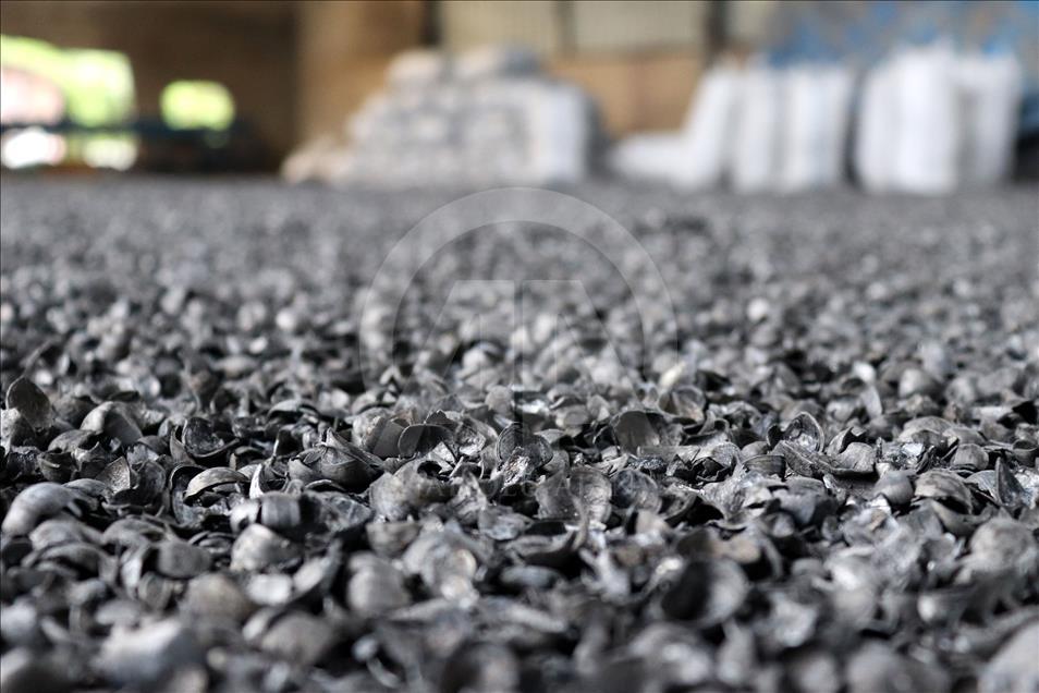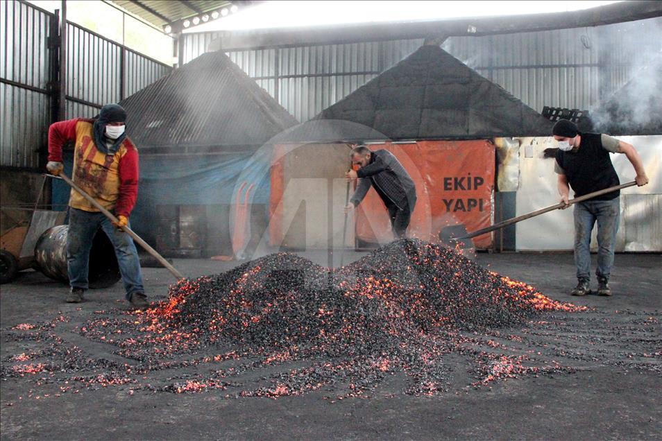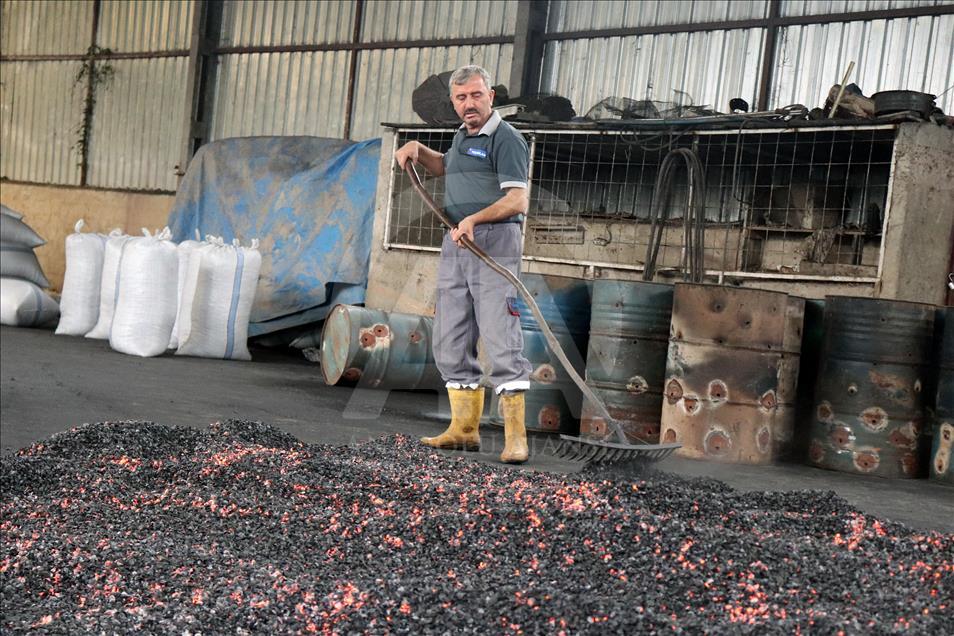 Ordu'nun Ünye ilçesindeki bir tesiste, 10 ton fındık kabuğundan günde 3 ton mangal kömürü üretiliyor.