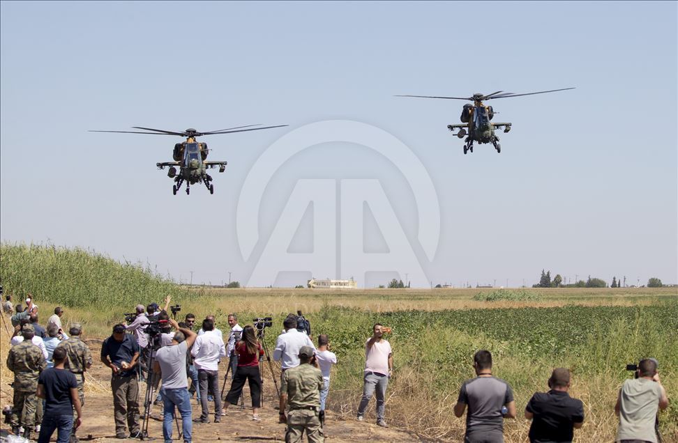Türk Silahlı Kuvvetleri (TSK) ve ABD Silahlı Kuvvetleri unsurları, Suriye'de Fırat'ın doğusunda güvenli bölge birinci safha uygulamaları kapsamında ilk ortak kara devriyesine başladı. Bölgede iki helikopterin uçuş yaptığı görüldü. ( Eşber Ayaydın - Anadolu Ajansı )Eşber Ayaydın