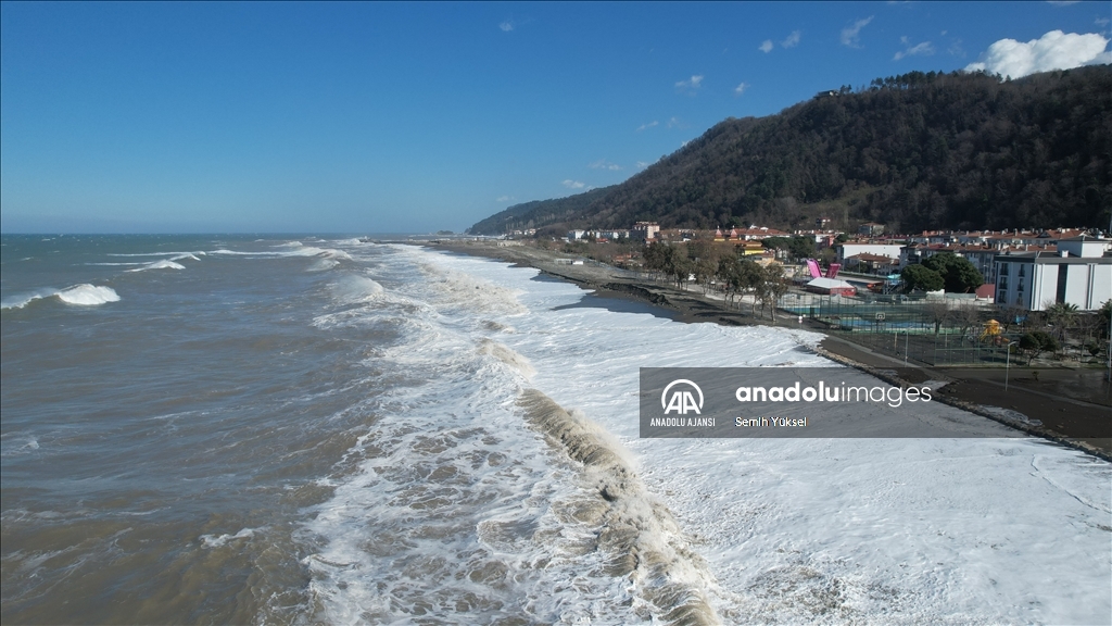 Fırtına nedeniyle Karadeniz'de oluşan dev dalgalar sahil şeridine zarar verdi