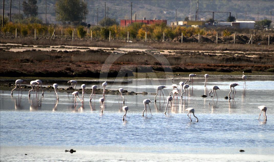 Flamingo ve pelikanların Muğla'nın Bodrum ilçesine göç yolculuğu başladı. Milas-Bodrum karayolu kenarında bulunan ve Türkiye'de göçmen kuşlar için en önemli sulak alanlardan biri olan Tuzla Sulak Alanı, farklı türlerdeki göçmen kuşlara bu yılda ev sahipliği yapmaya başladı. ( Ali Ballı - Anadolu Ajansı )Ali Ballı