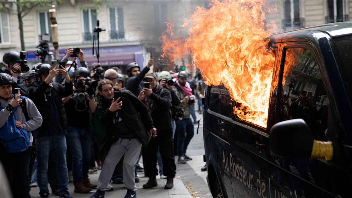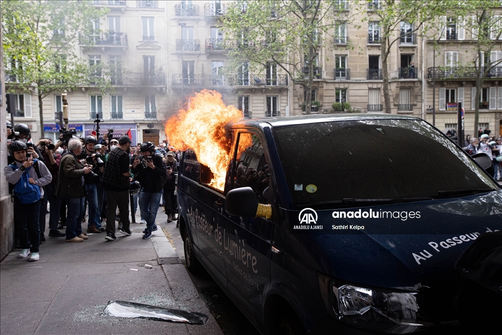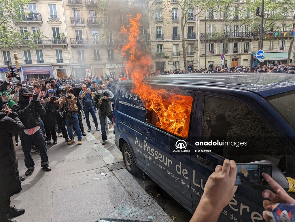 Paris'te 1 Mayıs yürüyüşü, yerel saatle 14.00 civarında Cumhuriyet Meydanı'nda başladı. Eylemciler, gösteride, asgari ücretin ve maaşların artırılmasını, çalışma koşullarının iyileştirilmesini talep etti. Polis, göstericilere biber gazı ile müdahale etti. Gösteri sırasında bir araç ateşe verildi. ( Luc Auffret - Anadolu Ajansı )Luc Auffret