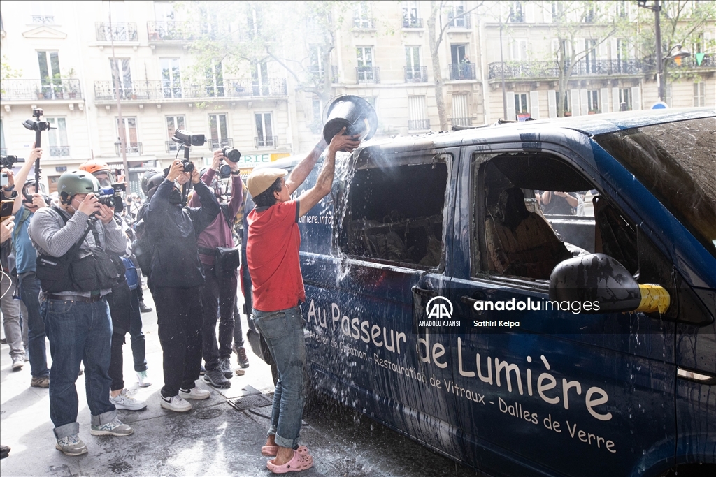Paris'te 1 Mayıs yürüyüşü, yerel saatle 14.00 civarında Cumhuriyet Meydanı'nda başladı. Eylemciler, gösteride, asgari ücretin ve maaşların artırılmasını, çalışma koşullarının iyileştirilmesini talep etti. Polis, göstericilere biber gazı ile müdahale etti. Gösteri sırasında bir araç ateşe verildi.