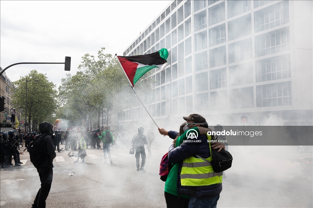 Paris'te 1 Mayıs yürüyüşü, yerel saatle 14.00 civarında Cumhuriyet Meydanı'nda başladı. Eylemciler, gösteride, asgari ücretin ve maaşların artırılmasını, çalışma koşullarının iyileştirilmesini talep etti. Polis, göstericilere biber gazı ile müdahale etti.