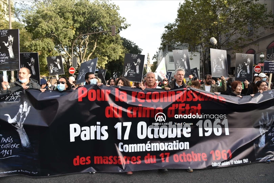 Fransa'nın başkenti Paris'te 17 Ekim 1961'de Cezayir'in bağımsızlık mücadelesine destek için barışçıl gösteri düzenleyen Cezayirlilere yönelik Fransız polisinin katliamının 60. yılında hayatını kaybedenler için anma töreni gerçekleştirildi.
