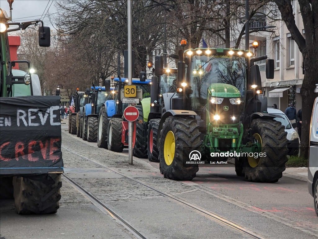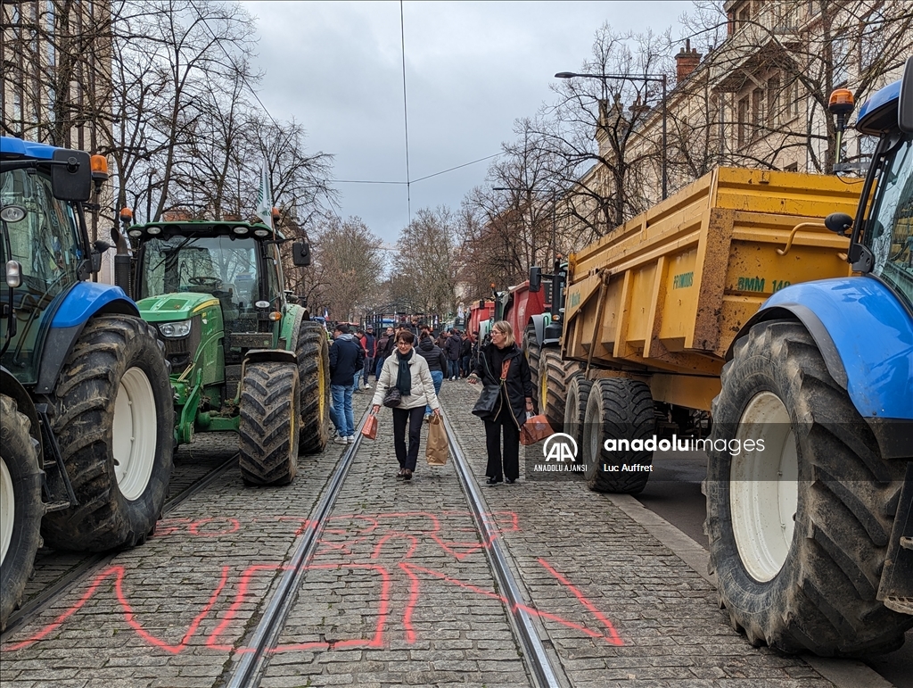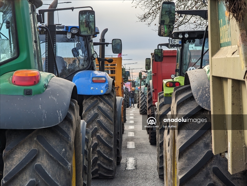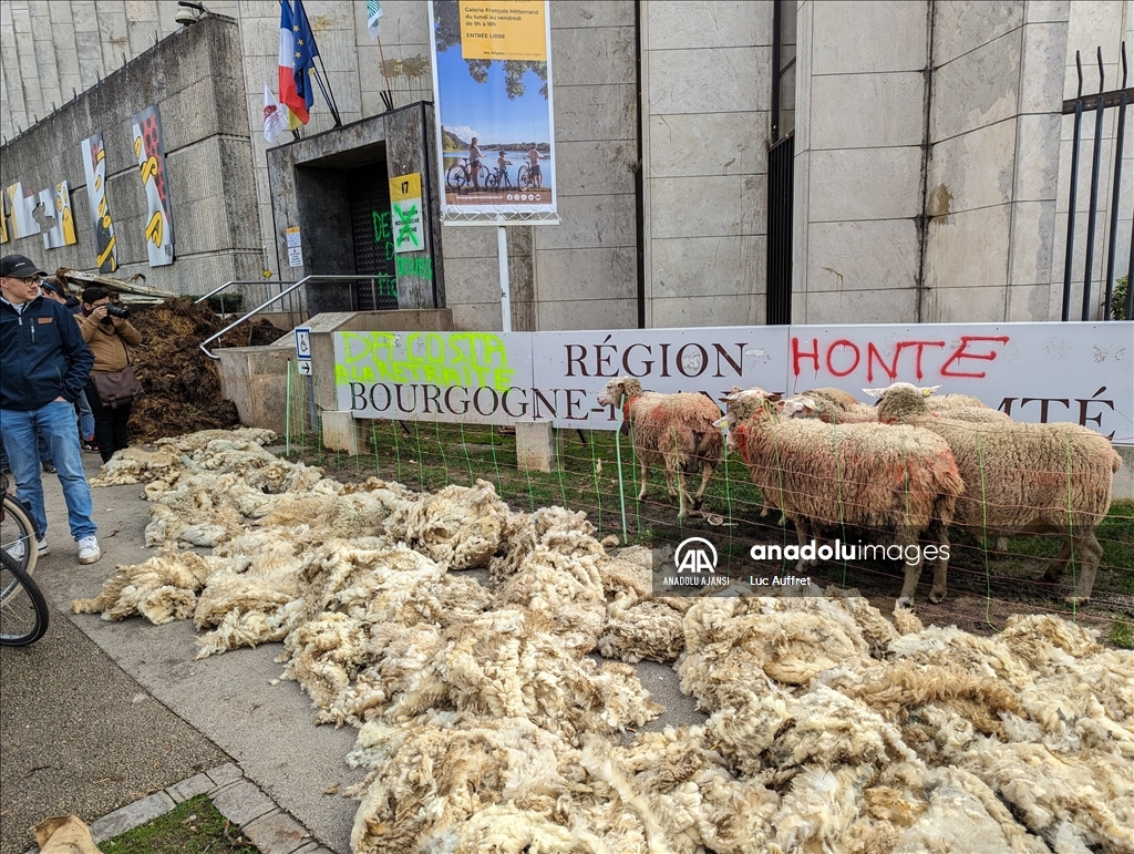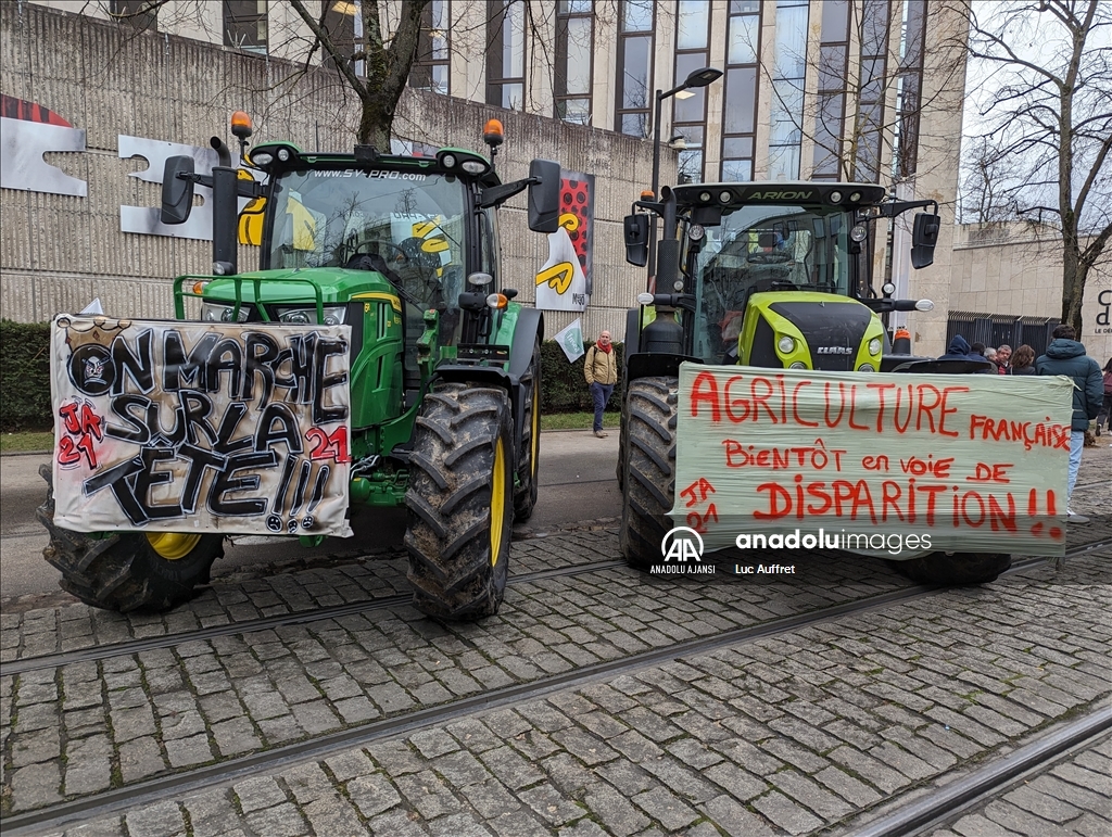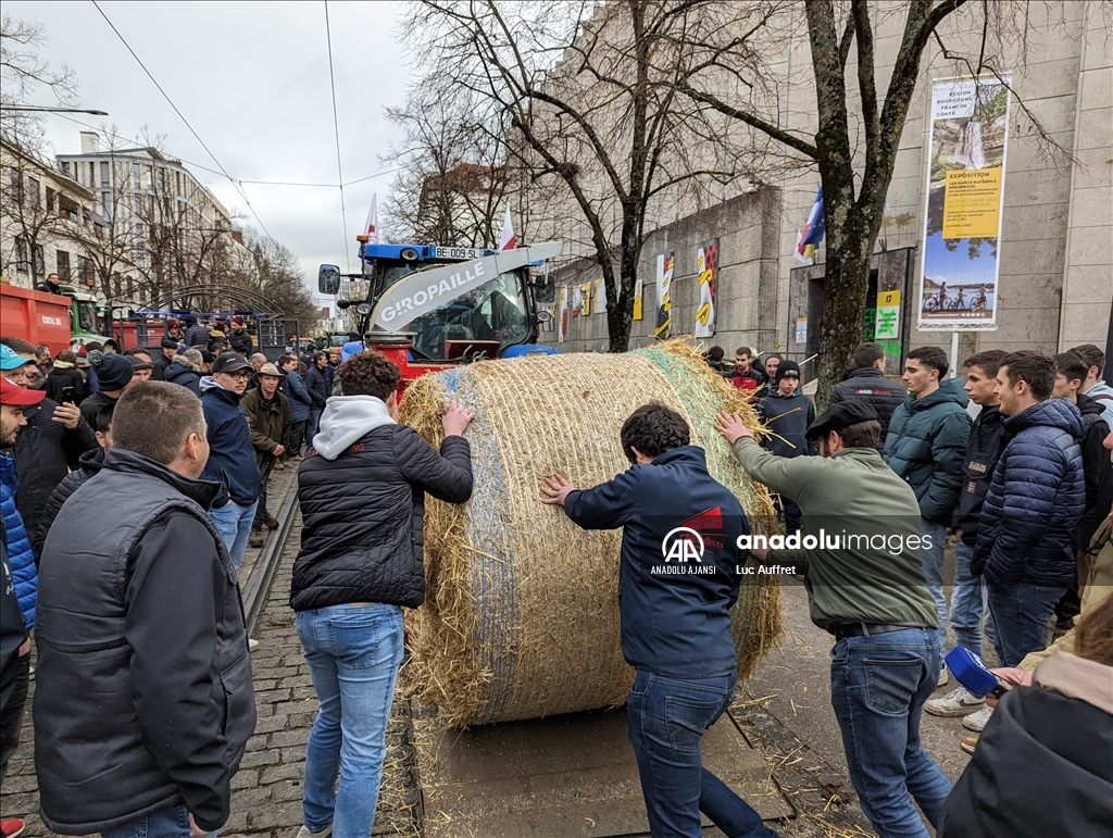 Fransa'nın Dijon kentindeki çiftçiler Bölgesel Konsey'i protesto etti. Bölgesel Konsey önünde toplanan yüzlerce çiftçi, 80'den fazla traktör ile Avrupa sübvansiyonlarının ödenmesindeki gecikmeleri kınamak amacıyla protesto düzenledi. Ülke çapında çiftçiler tarafından devam eden protestolar, tarım politikalarını ve yüksek vergileri pankartlarla protesto etti. ( Luc Auffret - Anadolu Ajansı )Luc Auffret
