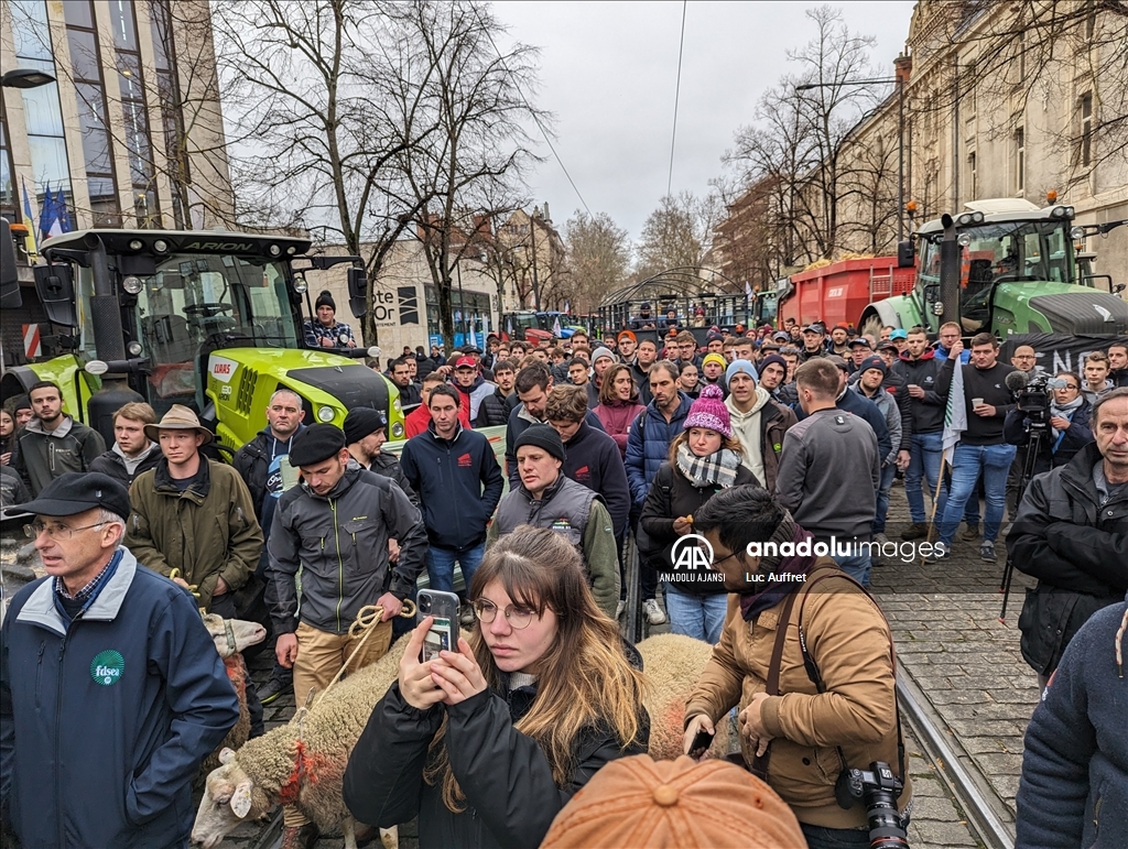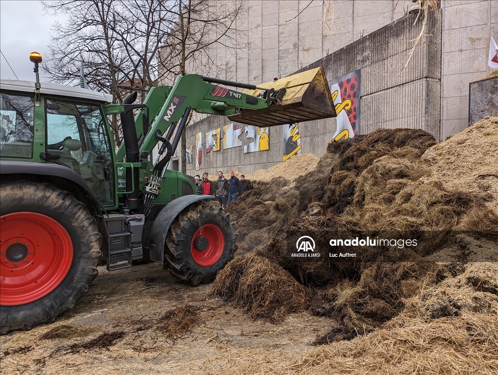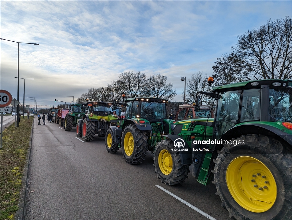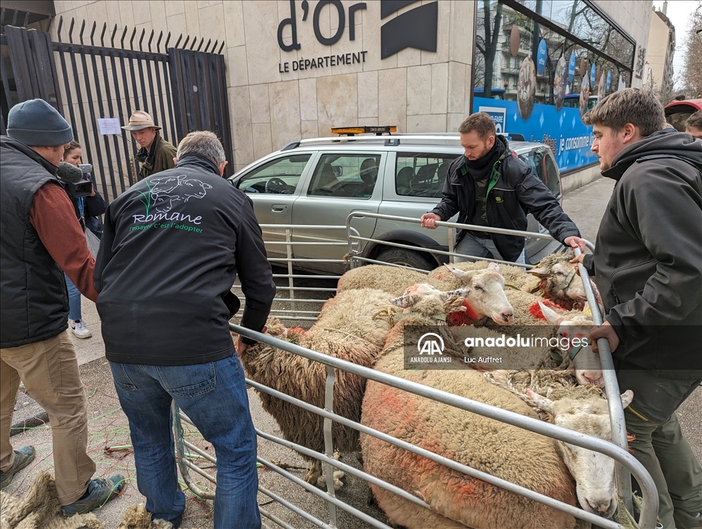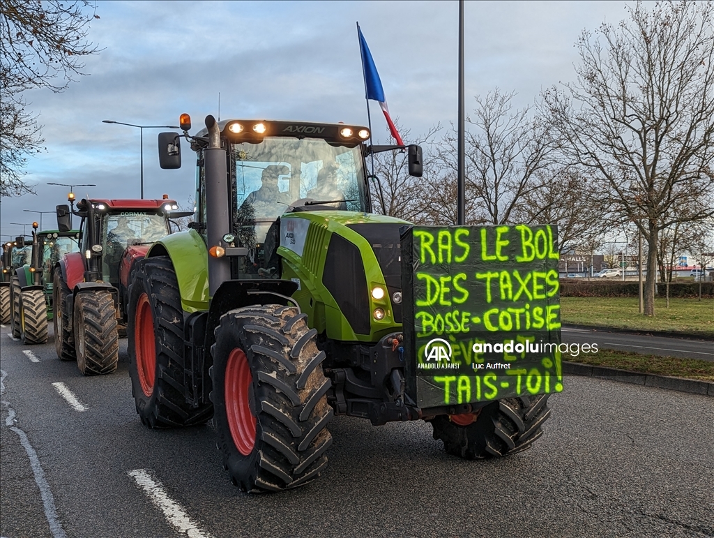 Fransa'nın Dijon kentindeki çiftçiler Bölgesel Konsey'i protesto etti. Bölgesel Konsey önünde toplanan yüzlerce çiftçi, 80'den fazla traktör ile Avrupa sübvansiyonlarının ödenmesindeki gecikmeleri kınamak amacıyla protesto düzenledi. Ülke çapında çiftçiler tarafından devam eden protestolar, tarım politikalarını ve yüksek vergileri pankartlarla protesto etti. ( Luc Auffret - Anadolu Ajansı )Luc Auffret