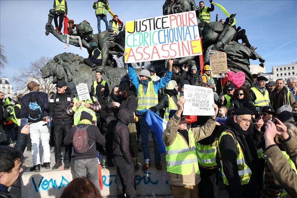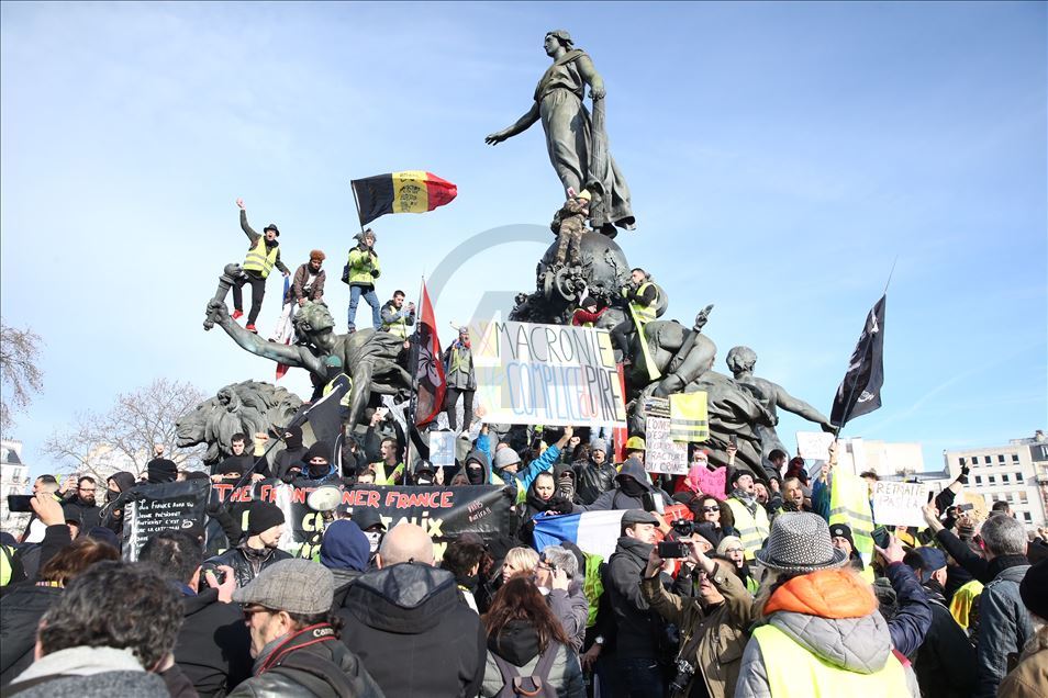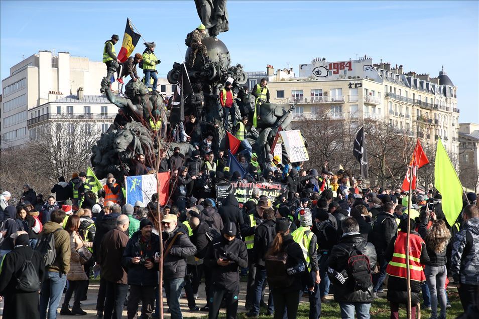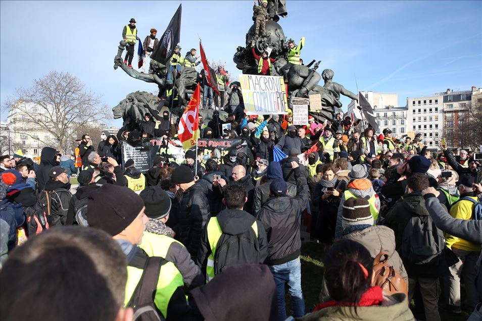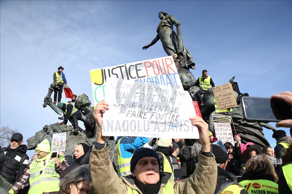 Fransa'nın başkenti Paris'te Cumhurbaşkanı Emmanuel Macron yönetiminin emeklilik reformunu protesto etmek için gösteri düzenlendi. Gösteriye sarı yelekliler de katıldı. ( Dursun Aydemir - Anadolu Ajansı )Dursun Aydemir
