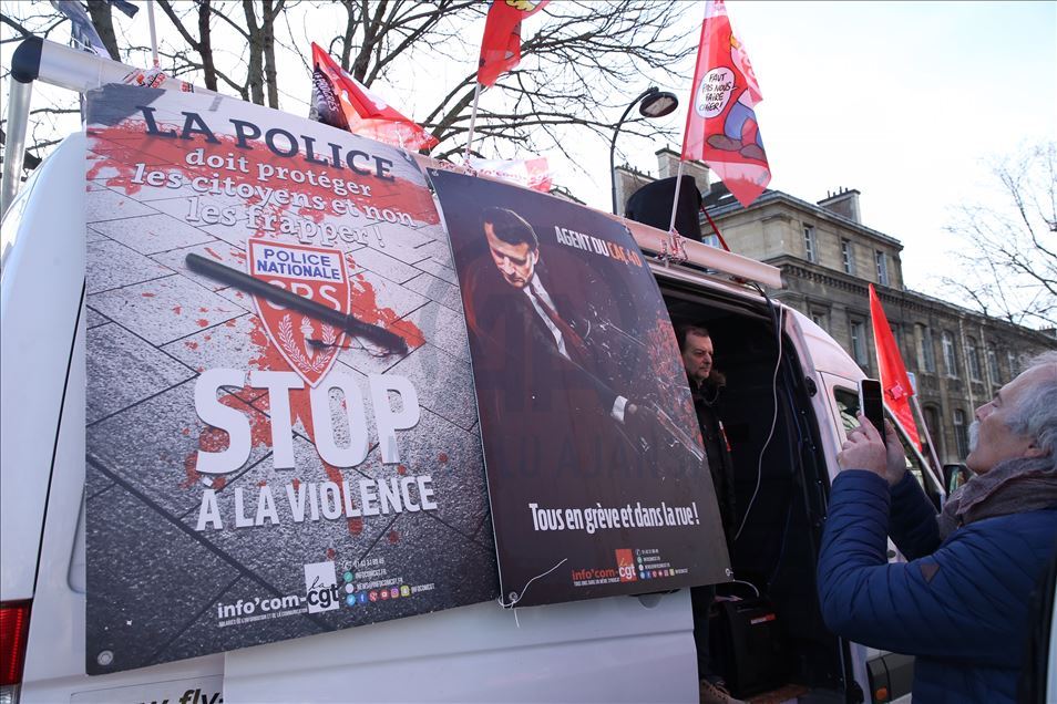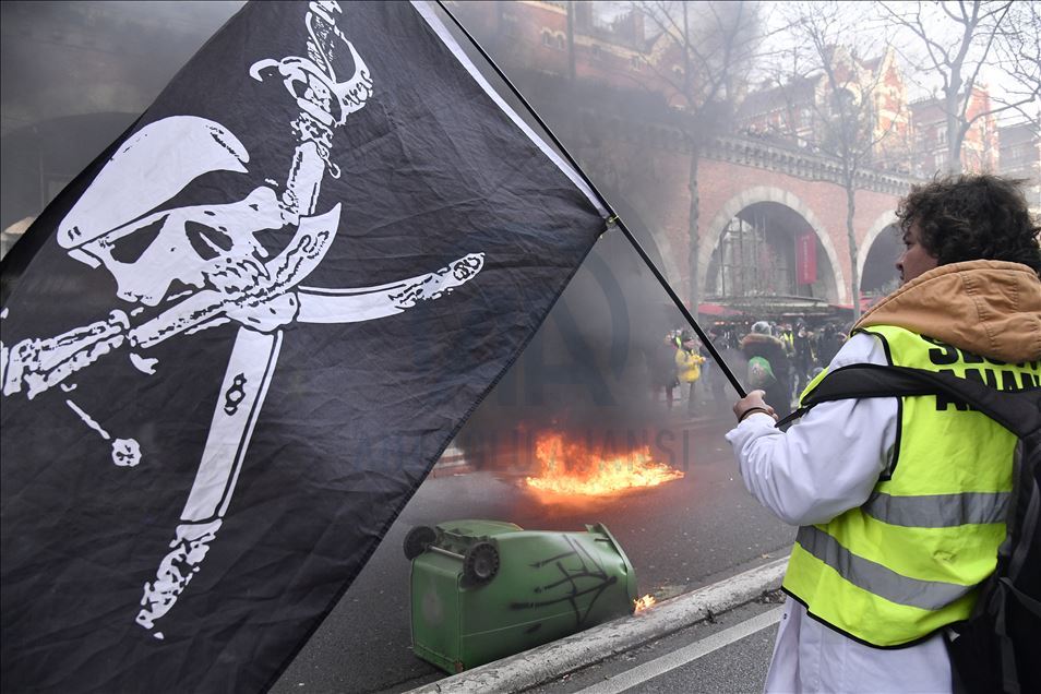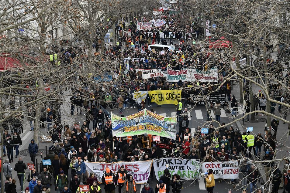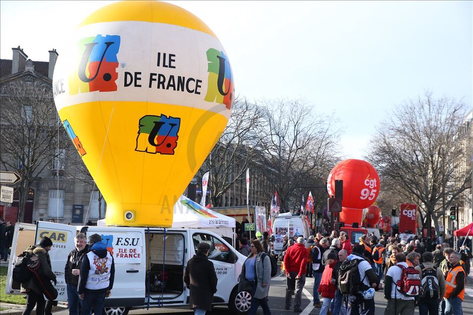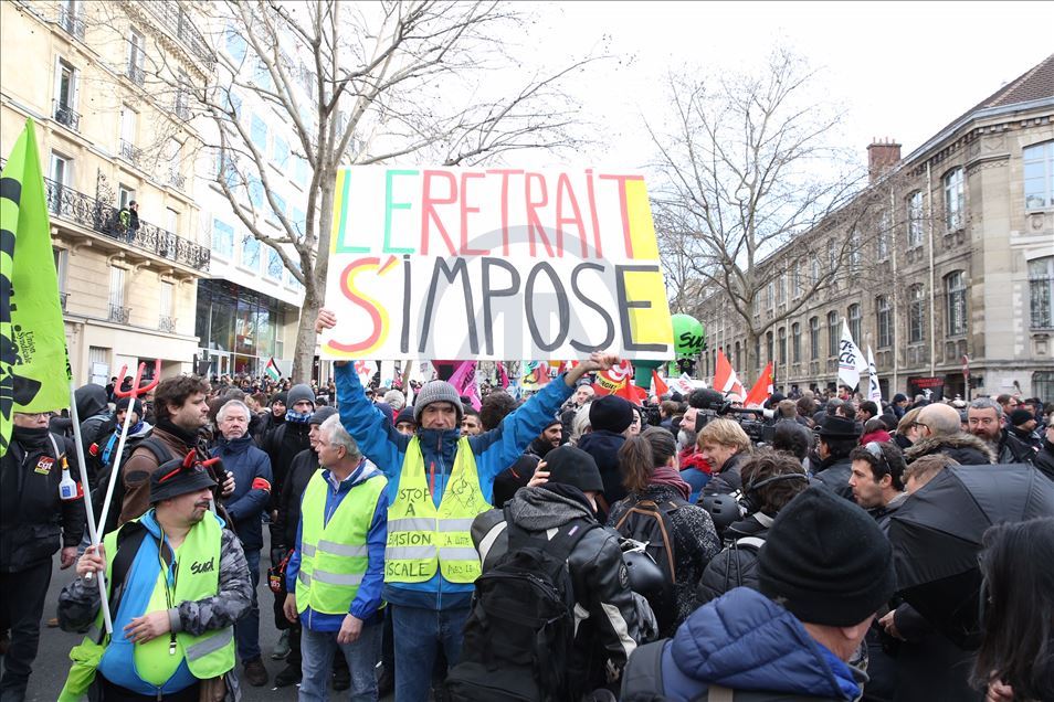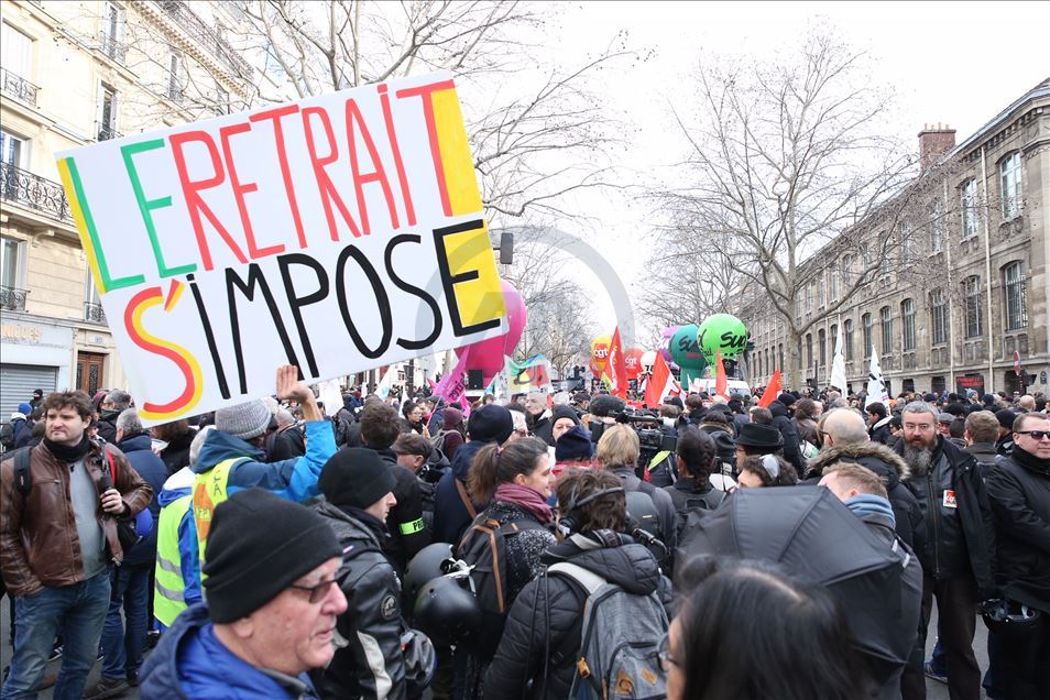 Fransa'nın başkenti Paris'te Cumhurbaşkanı Emmanuel Macron yönetiminin emeklilik reformunu protesto etmek için gösteri düzenlendi.