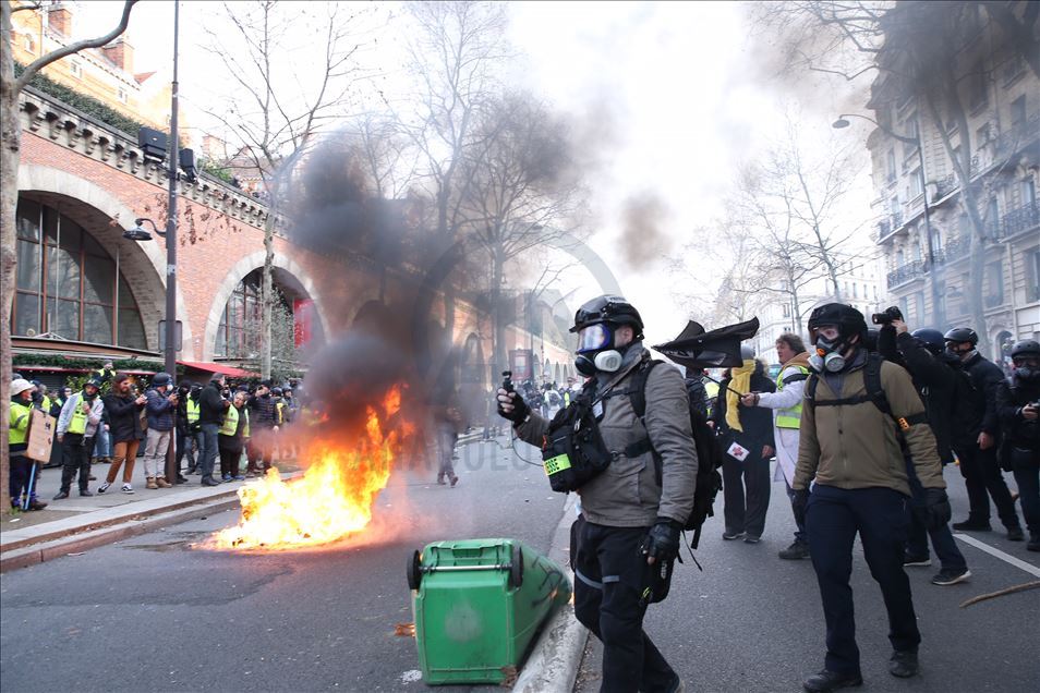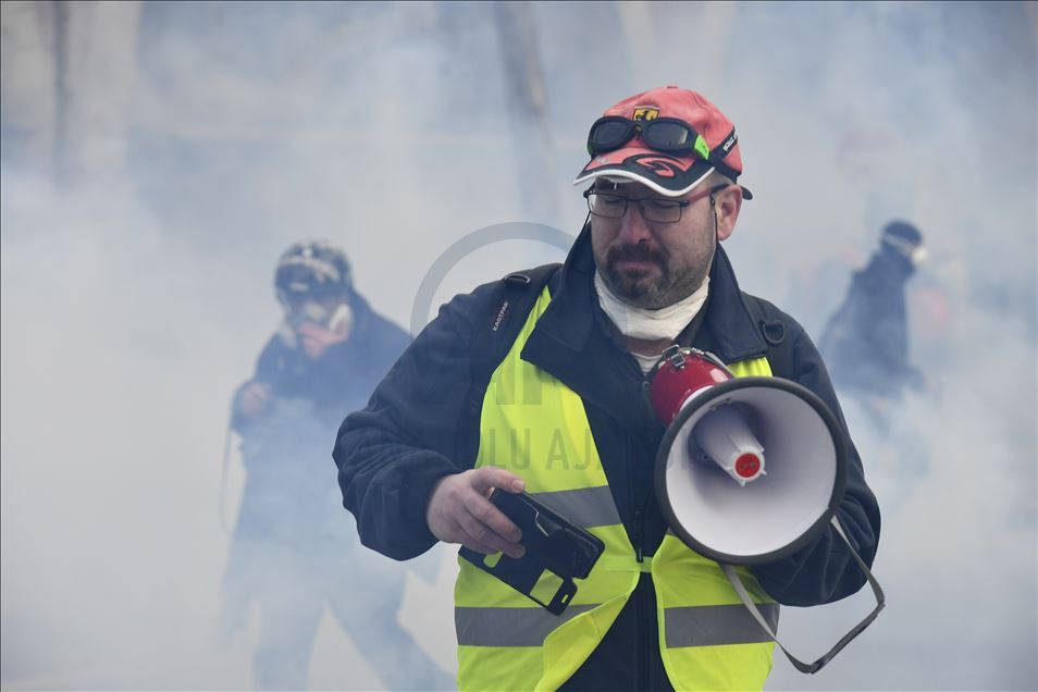 Fransa'nın başkenti Paris'te Cumhurbaşkanı Emmanuel Macron yönetiminin emeklilik reformunu protesto etmek için gösteri düzenlendi. Eyleme sarı yeleklilerde katıldı. Polis, göstericilere müdahale etti. ( Dursun Aydemir - Anadolu Ajansı )Dursun Aydemir