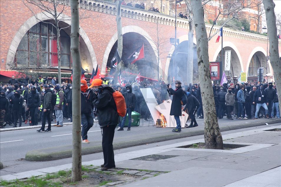 Fransa'nın başkenti Paris'te Cumhurbaşkanı Emmanuel Macron yönetiminin emeklilik reformunu protesto etmek için gösteri düzenlendi. Diderot Bulvarı'ndan Place de la Bastille'e doğru yürüyen göstericiler arasında farklı sendika üyeleri ile sarı yelekliler de yer aldı. Güvenlik güçleri gösteriye müdahale etti. ( Julien Mattia - Anadolu Ajansı )Julien Mattia