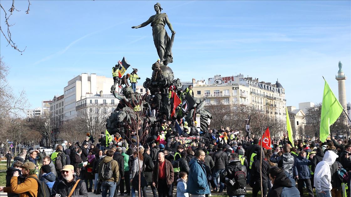 Fransa'nın başkenti Paris'te Cumhurbaşkanı Emmanuel Macron yönetiminin emeklilik reformunu protesto etmek için gösteri düzenlendi. Eyleme sarı yelekliler de katıldı. ( Dursun Aydemir - Anadolu Ajansı )Dursun Aydemir