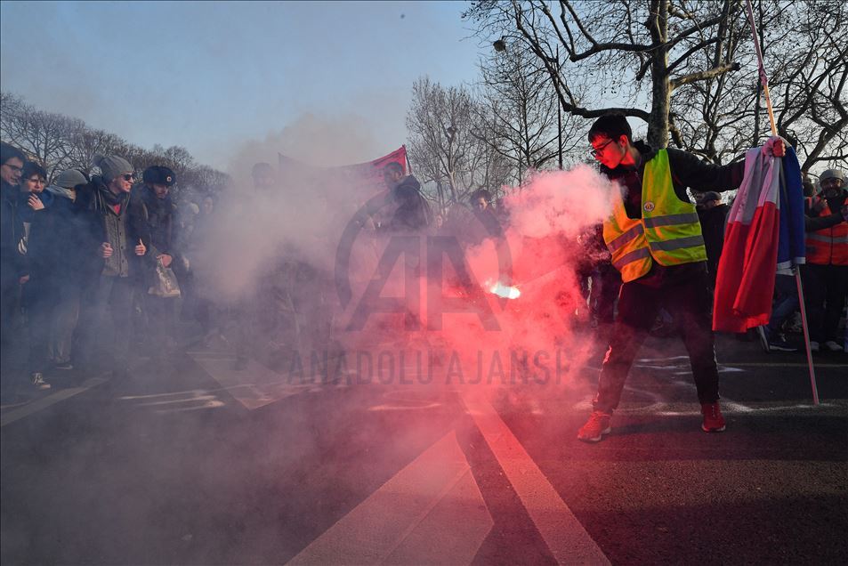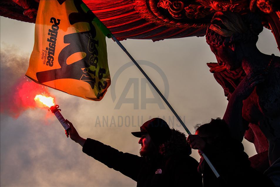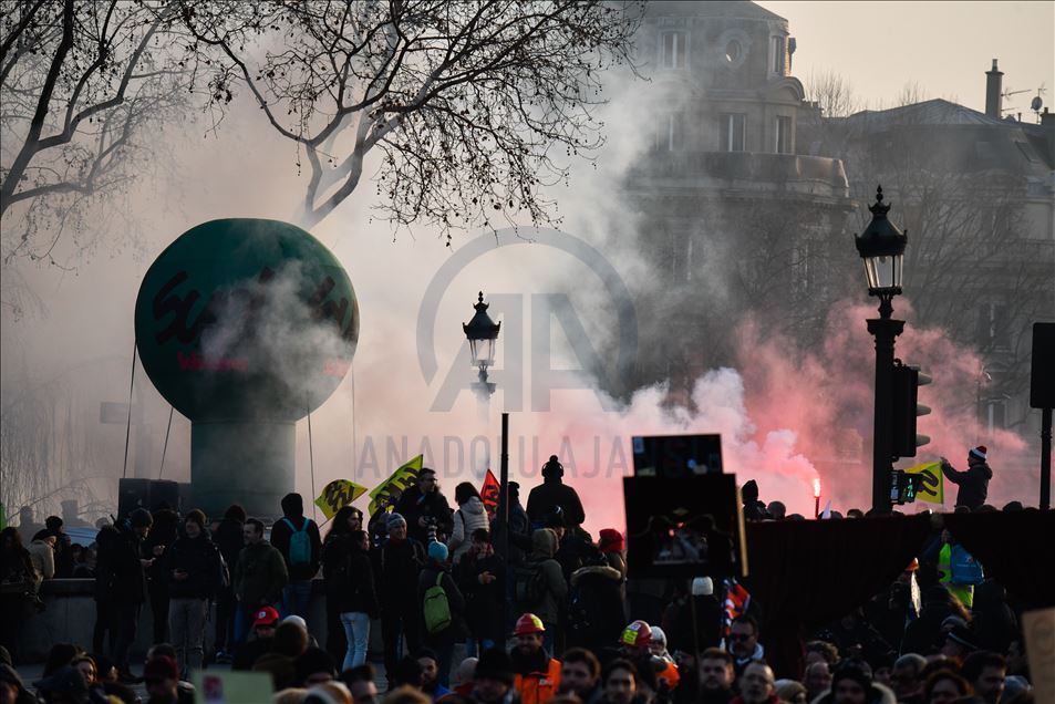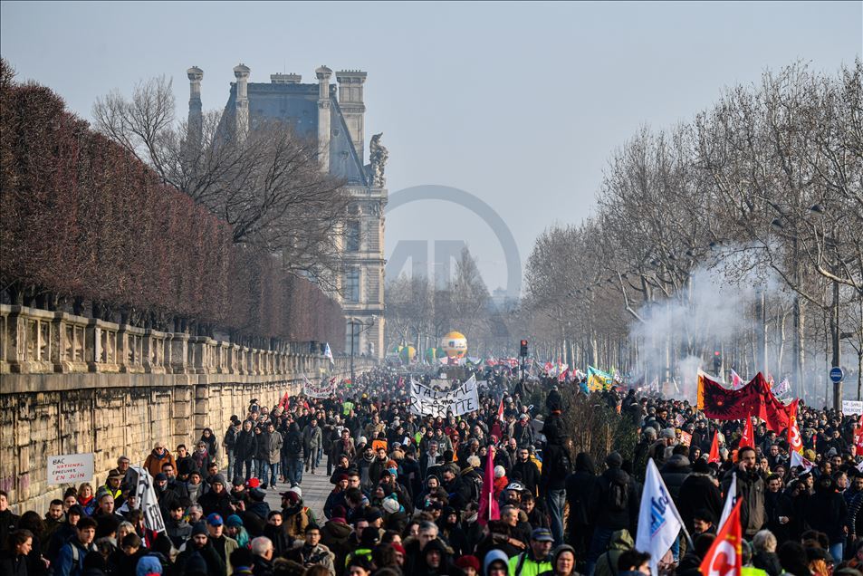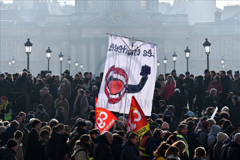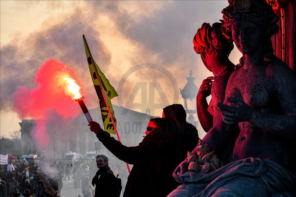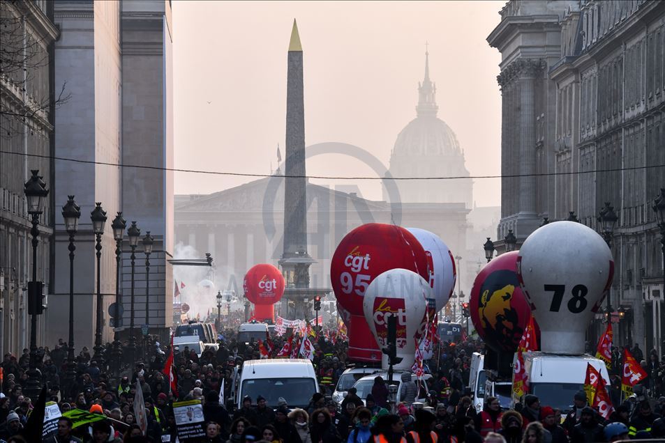 Fransa'da Cumhurbaşkanı Emmanuel Macron yönetiminin emeklilik reformunun geri çekilmesi konusunda ısrar eden binlerce kişi, ülke genelinde reformu protesto etti. Sendikaların çağrısıyla Republique Meydanı'ndan toplanan eylemciler, tarihi Concorde Meydanı'na yürüdü.