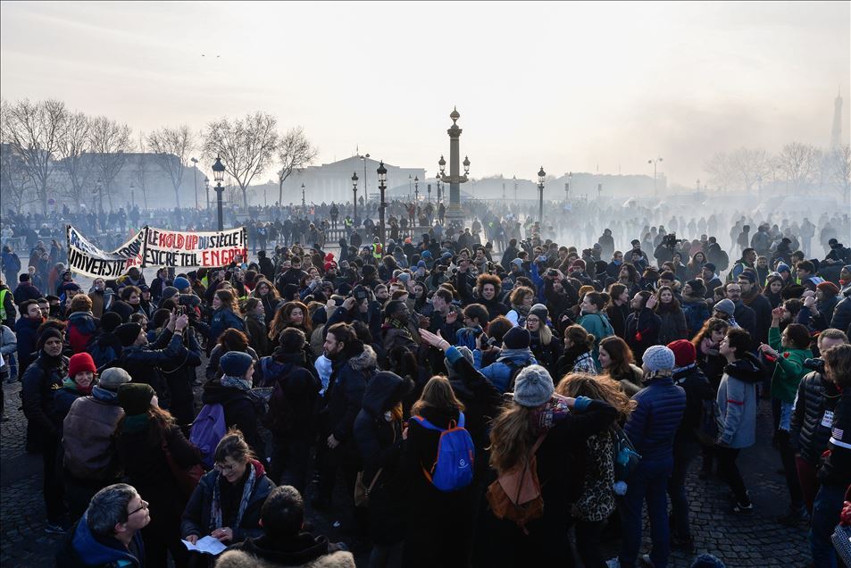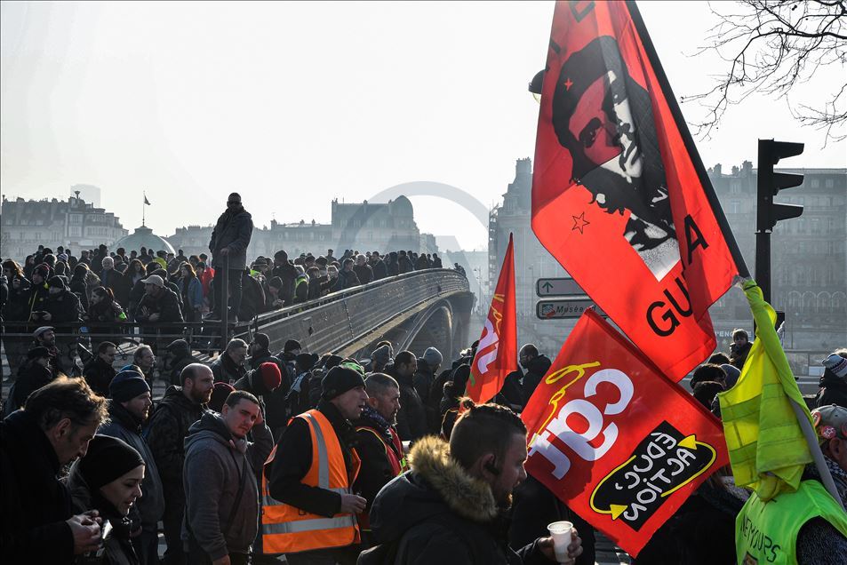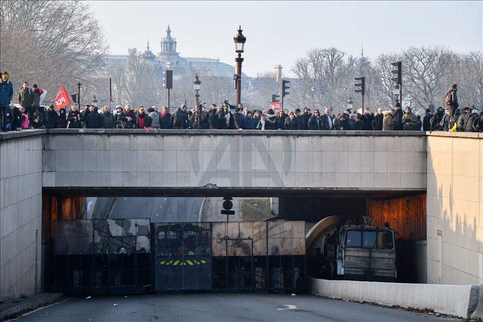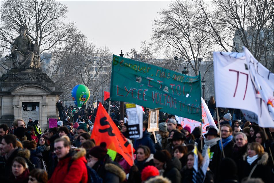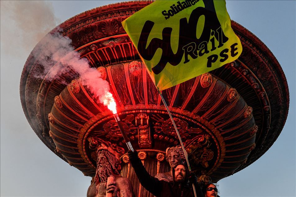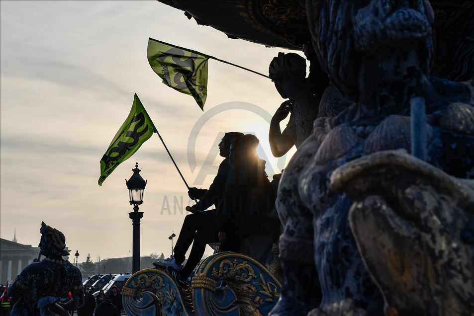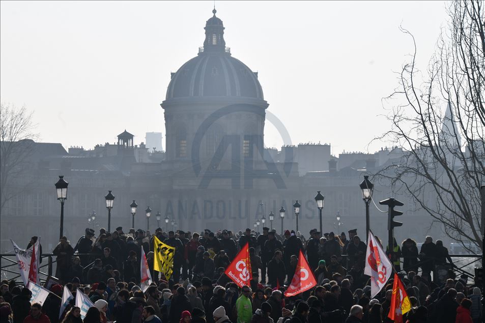 Fransa'da Cumhurbaşkanı Emmanuel Macron yönetiminin emeklilik reformunun geri çekilmesi konusunda ısrar eden binlerce kişi, ülke genelinde reformu protesto etti. Sendikaların çağrısıyla Republique Meydanı'ndan toplanan eylemciler, tarihi Concorde Meydanı'na yürüdü.