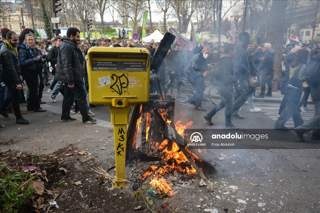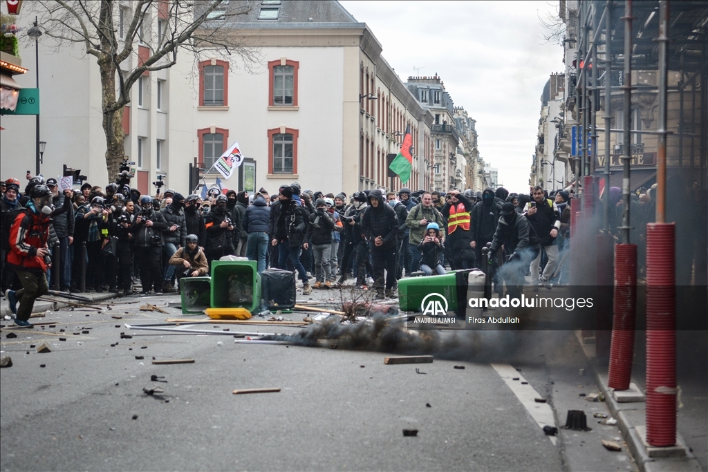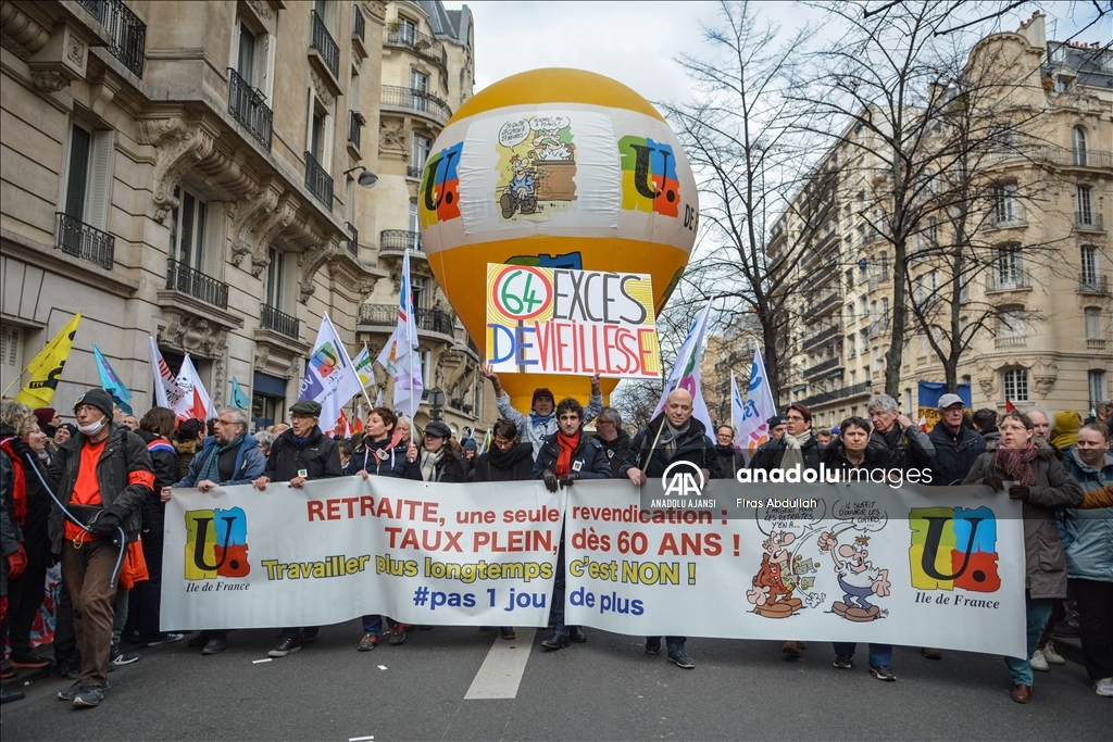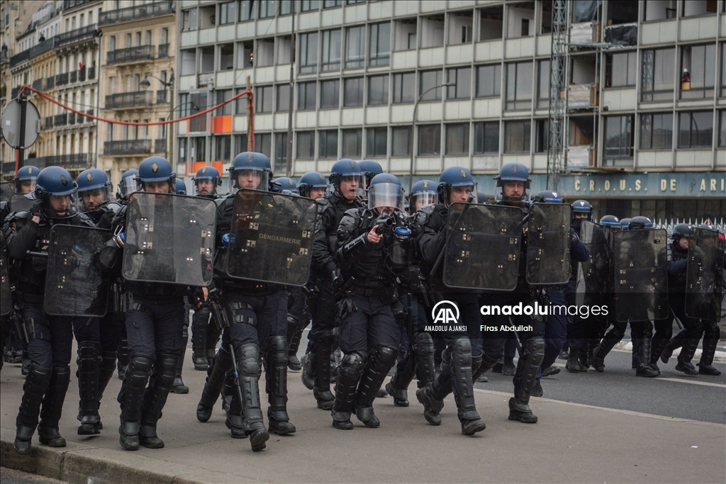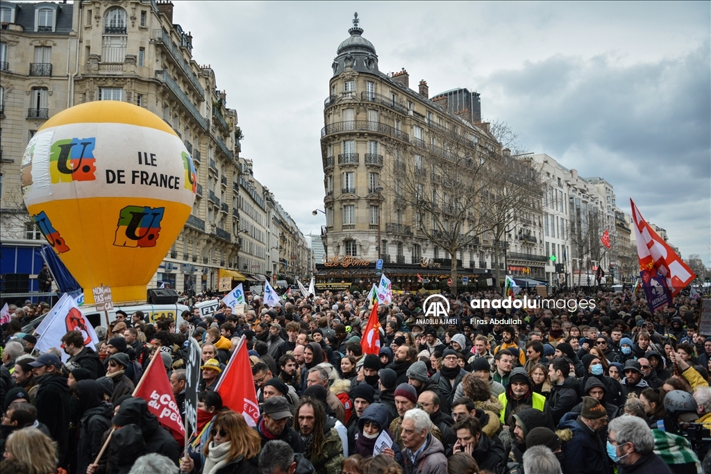 Fransa'da emeklilik yaşını 62'den 64'e çıkarmayı öngören tartışmalı reforma karşı kamu çalışanları dahil çok sayıda işçi başkent Paris'te greve çıktı. Güvenlik görevlileri göstericilere müdahale etti. ( Firas Abdullah - Anadolu Ajansı )Firas Abdullah