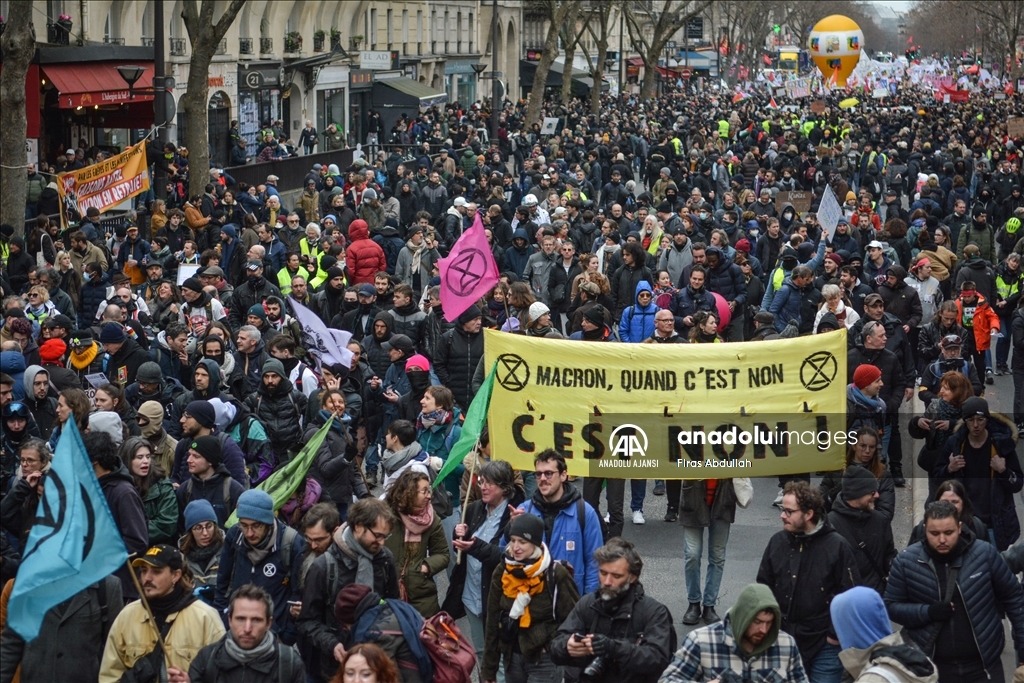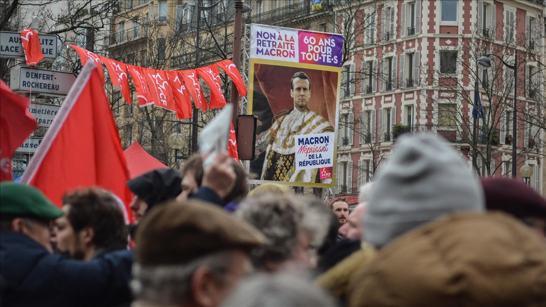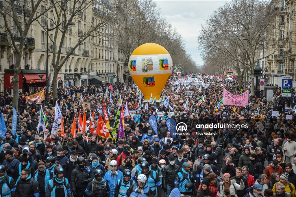 Fransa'da emeklilik yaşını 62'den 64'e çıkarmayı öngören tartışmalı reforma karşı kamu çalışanları dahil çok sayıda işçi başkent Paris'te greve çıktı. ( Firas Abdullah - Anadolu Ajansı )Firas Abdullah
