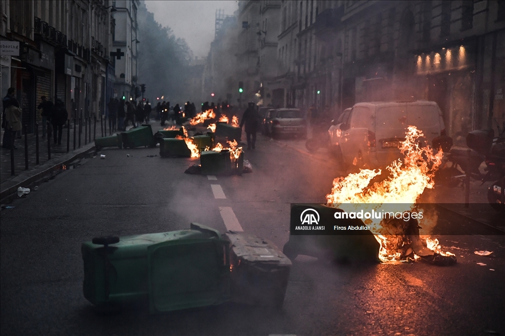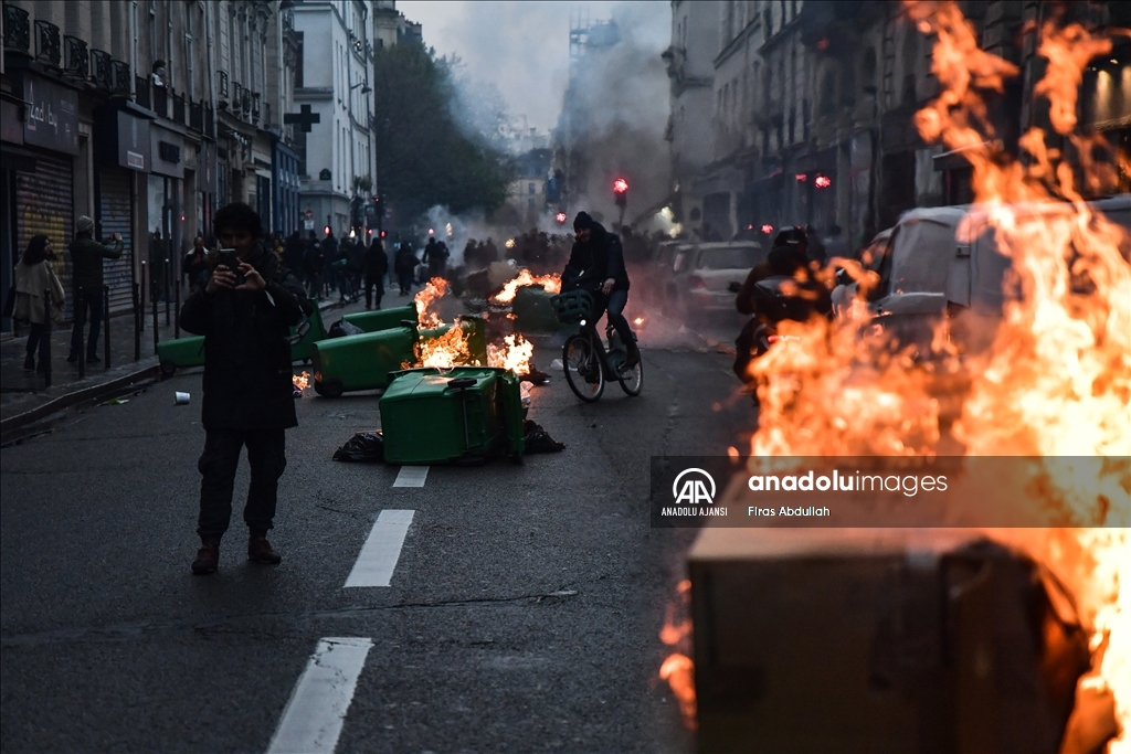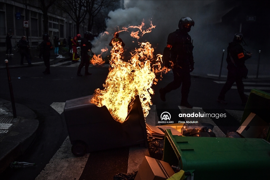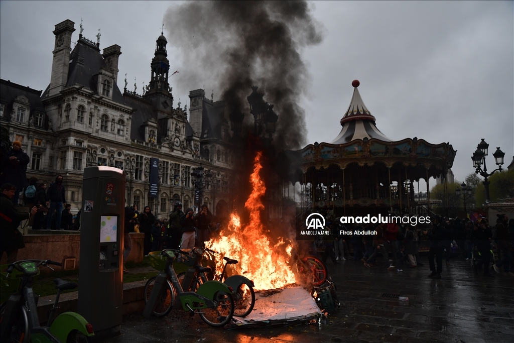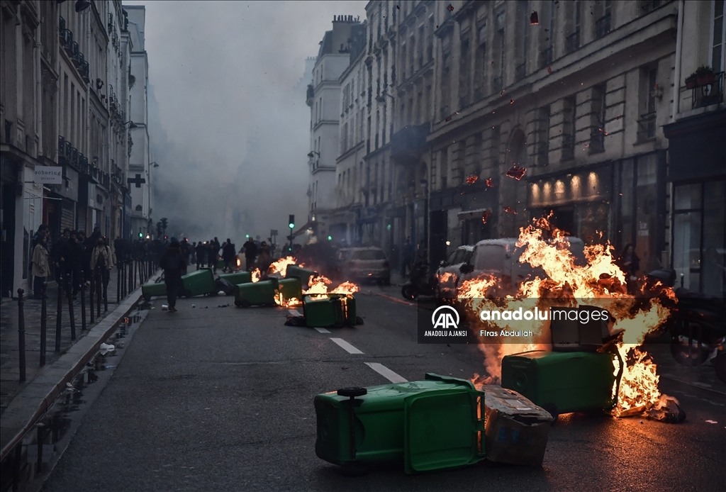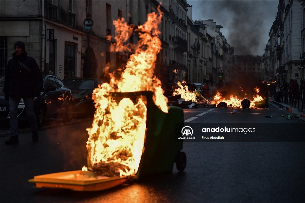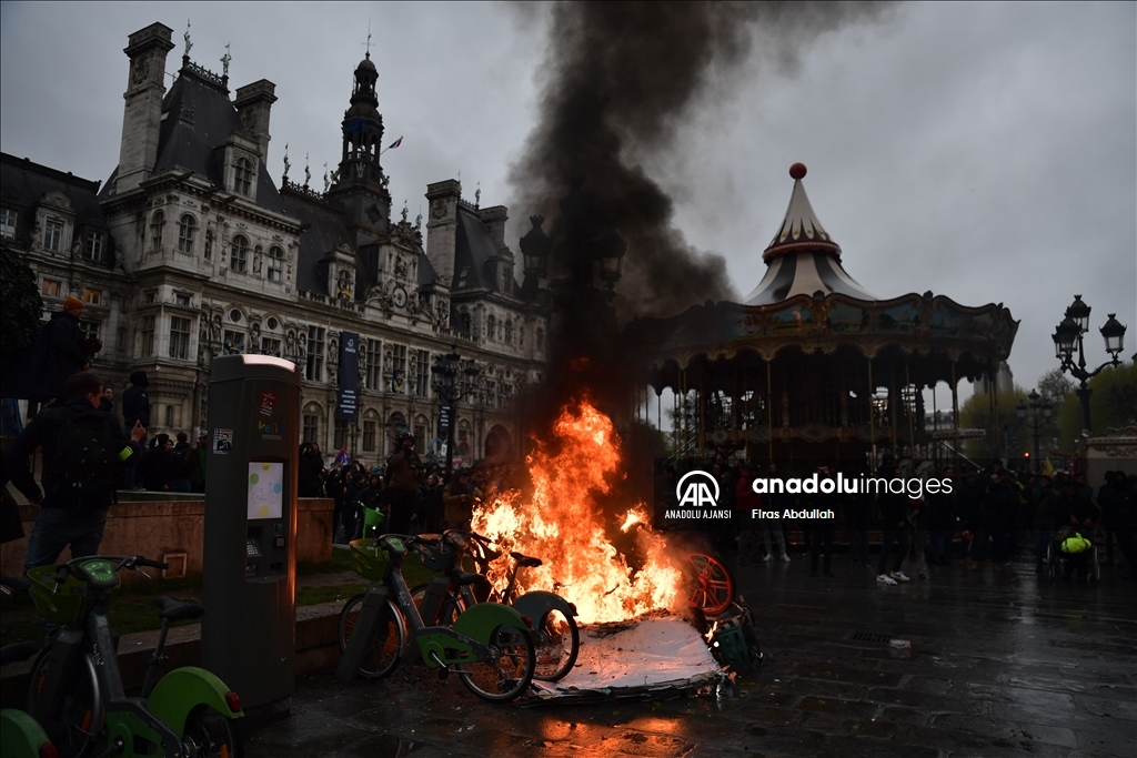 Fransızlar emeklilik reformunun geleceğini belirleyecek Anayasa Mahkemesi kararı öncesi 12. kez kitlesel gösteriler için sokağa iniyor. Başkent Paris'te çok sayıda vatandaş, mecliste oylamaya sunulmadan kabul edilen emeklilik reformunu protesto etti. Bazı göstericiler ateş yaktı. ( Firas Abdullah - Anadolu Ajansı )Firas Abdullah