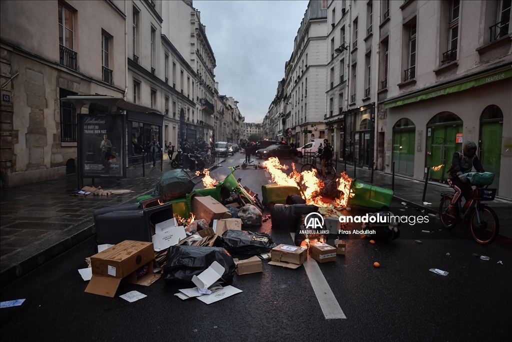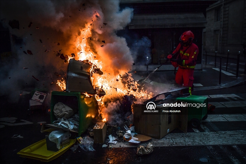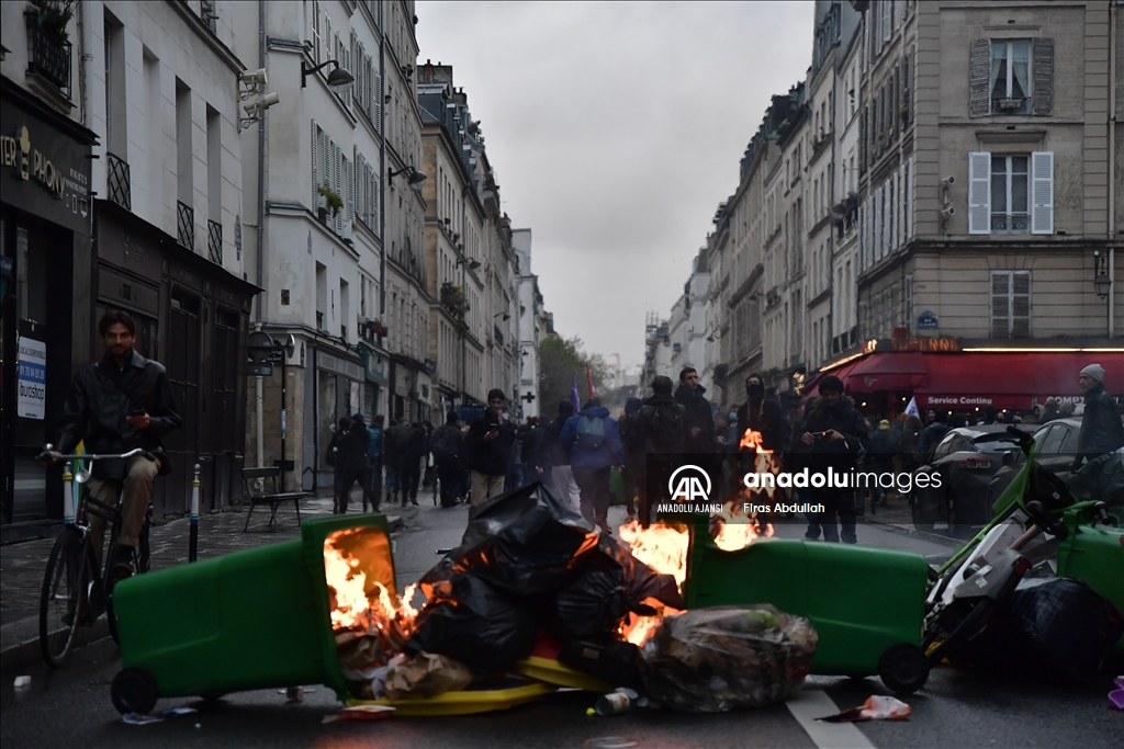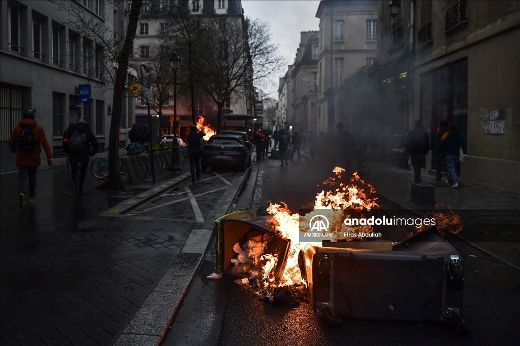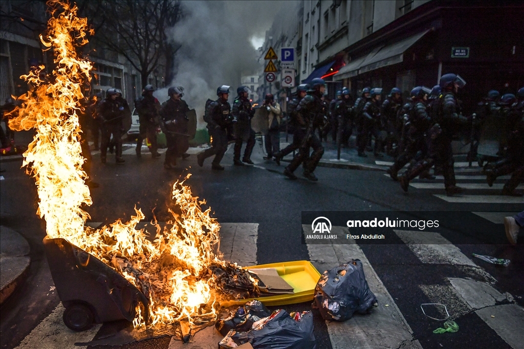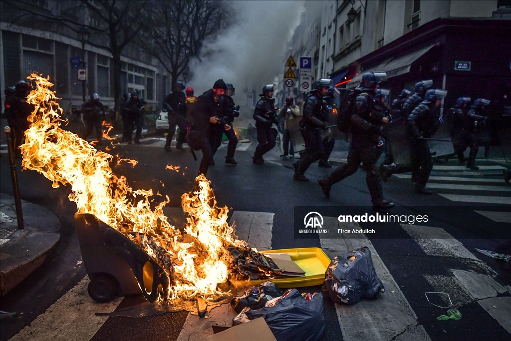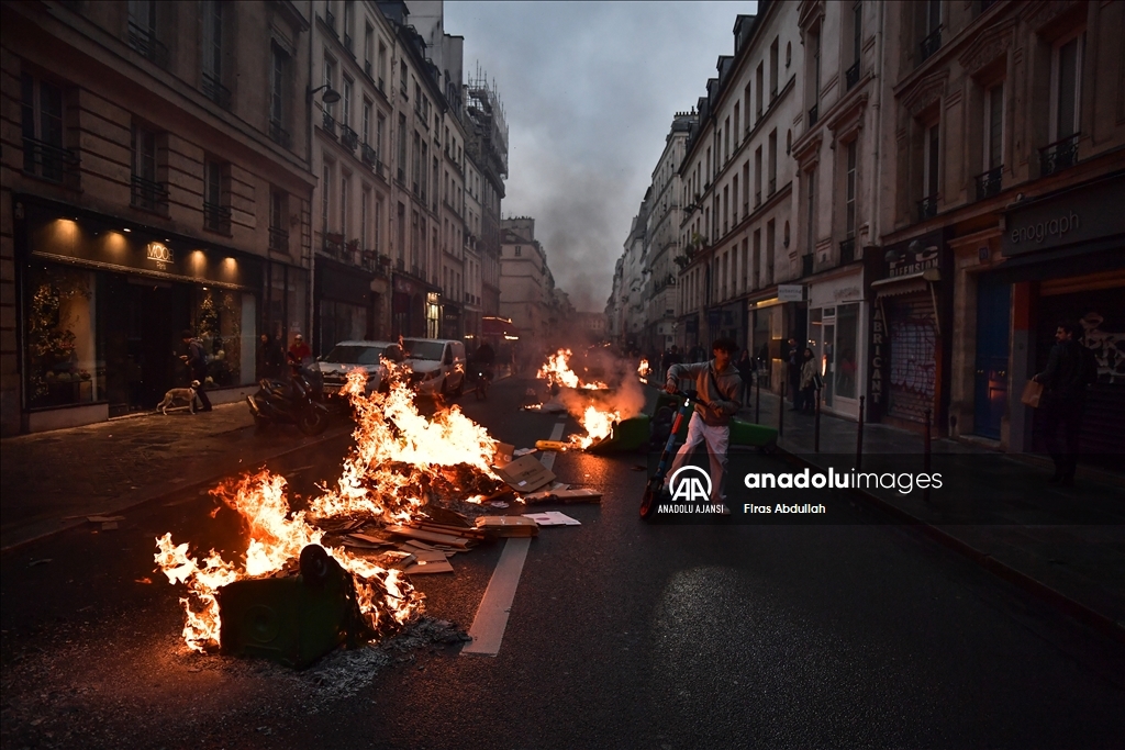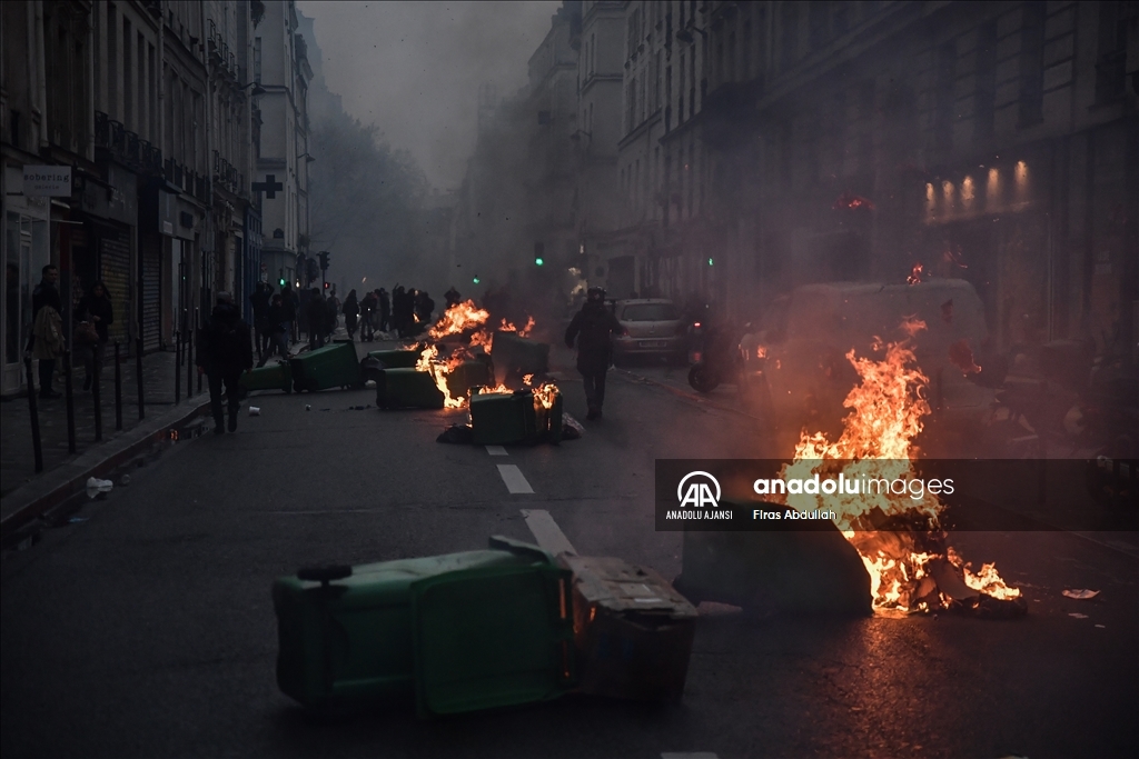 Fransızlar emeklilik reformunun geleceğini belirleyecek Anayasa Mahkemesi kararı öncesi 12. kez kitlesel gösteriler için sokağa iniyor. Başkent Paris'te çok sayıda vatandaş, mecliste oylamaya sunulmadan kabul edilen emeklilik reformunu protesto etti. Bazı göstericiler ateş yaktı. ( Firas Abdullah - Anadolu Ajansı )Firas Abdullah