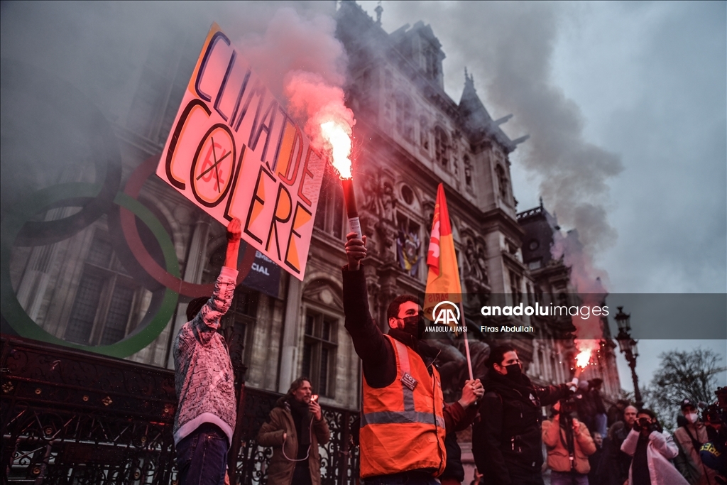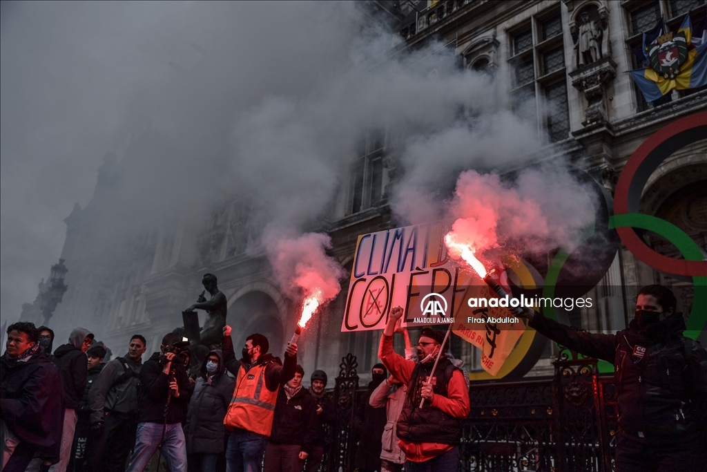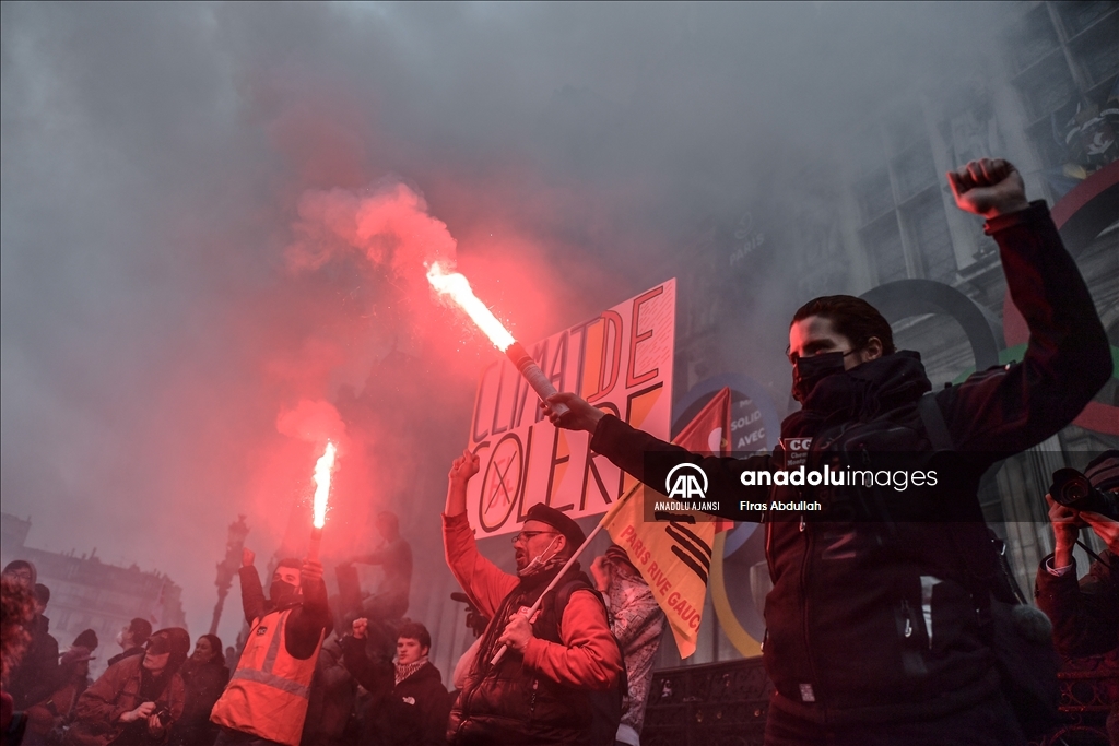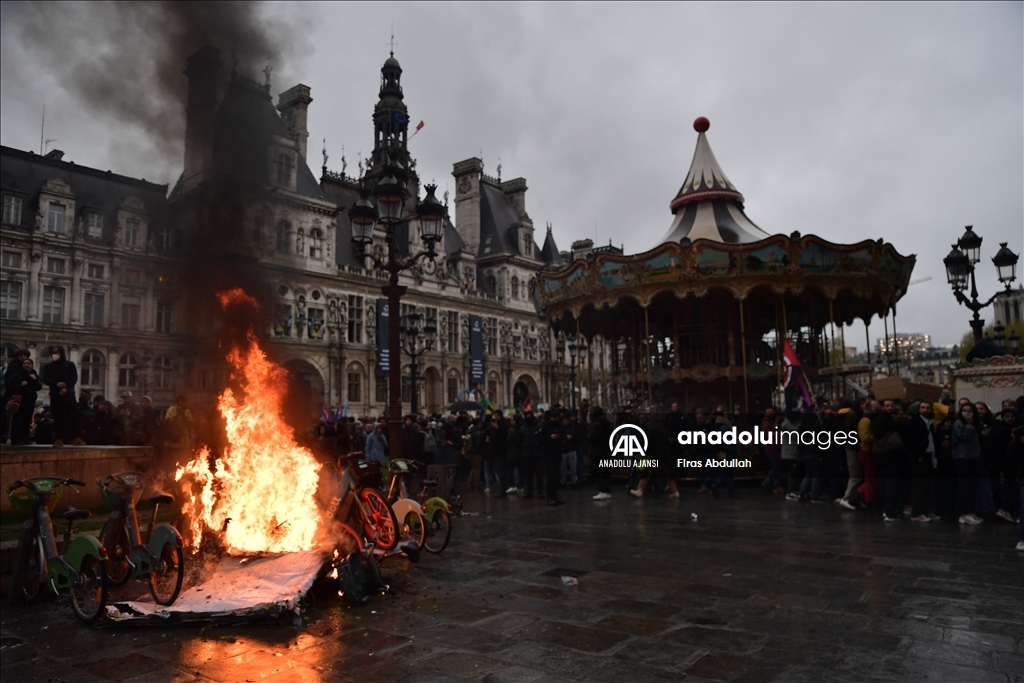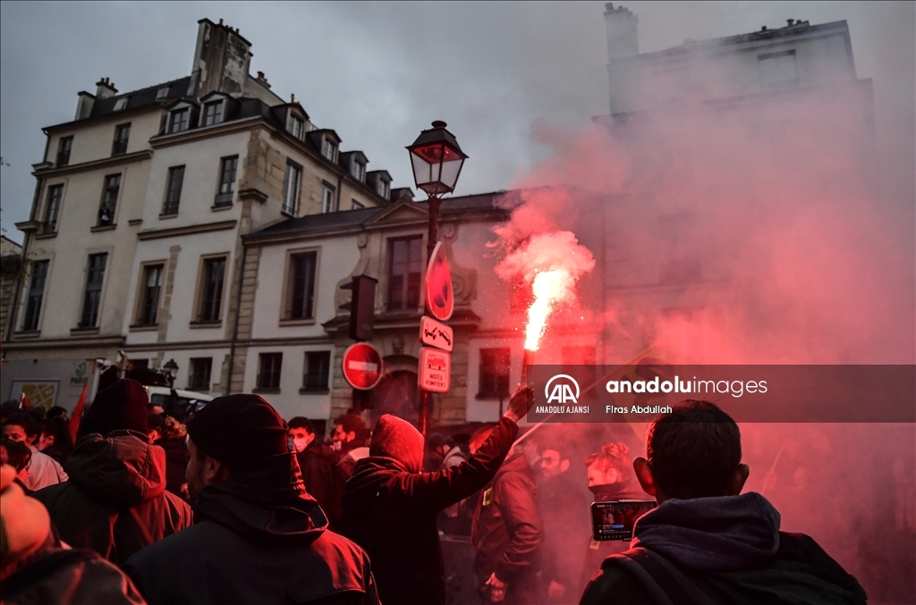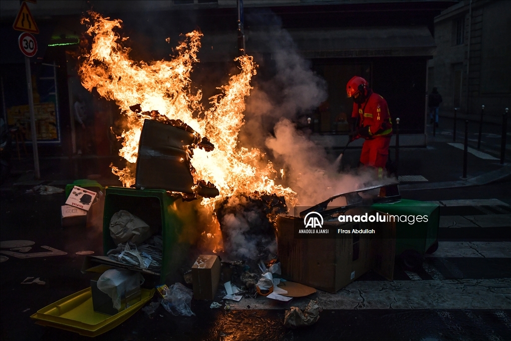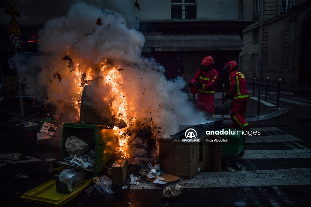 Fransızlar emeklilik reformunun geleceğini belirleyecek Anayasa Mahkemesi kararı öncesi 12. kez kitlesel gösteriler için sokağa iniyor. Başkent Paris'te çok sayıda vatandaş, mecliste oylamaya sunulmadan kabul edilen emeklilik reformunu protesto etti. Bazı göstericiler ateş yaktı. ( Firas Abdullah - Anadolu Ajansı )Firas Abdullah