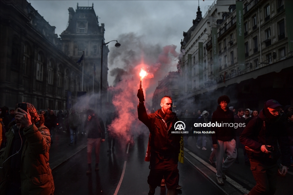 Fransızlar emeklilik reformunun geleceğini belirleyecek Anayasa Mahkemesi kararı öncesi 12. kez kitlesel gösteriler için sokağa iniyor. Başkent Paris'te çok sayıda vatandaş, mecliste oylamaya sunulmadan kabul edilen emeklilik reformunu protesto etti. ( Firas Abdullah - Anadolu Ajansı )Firas Abdullah