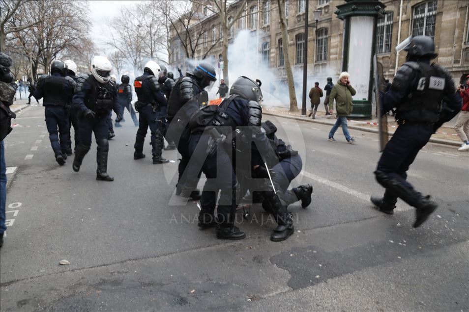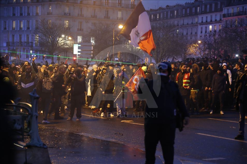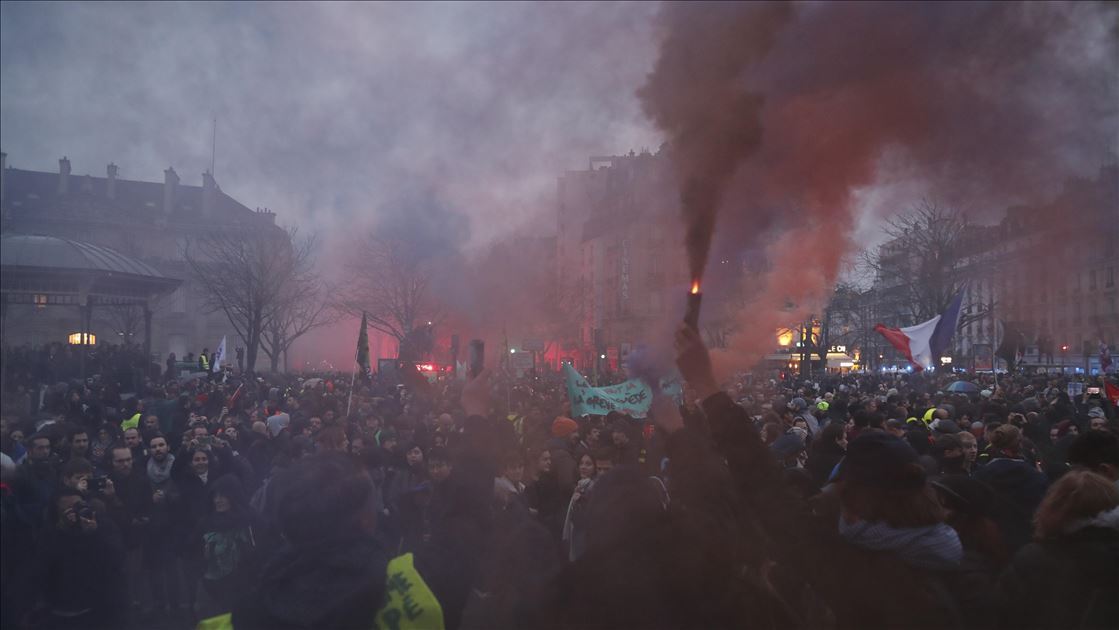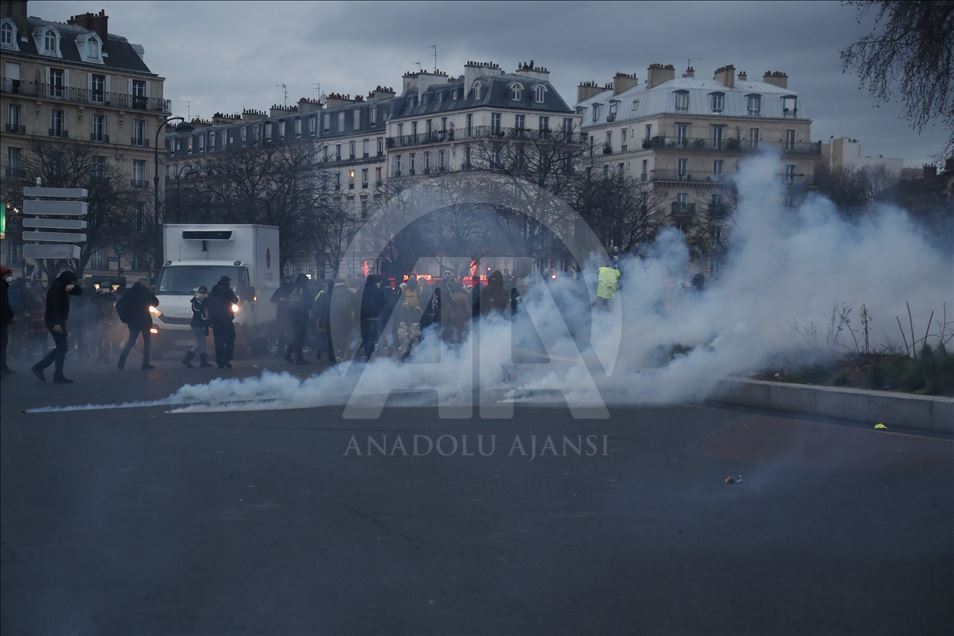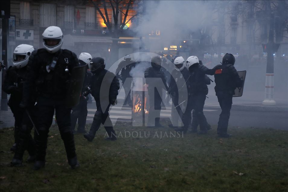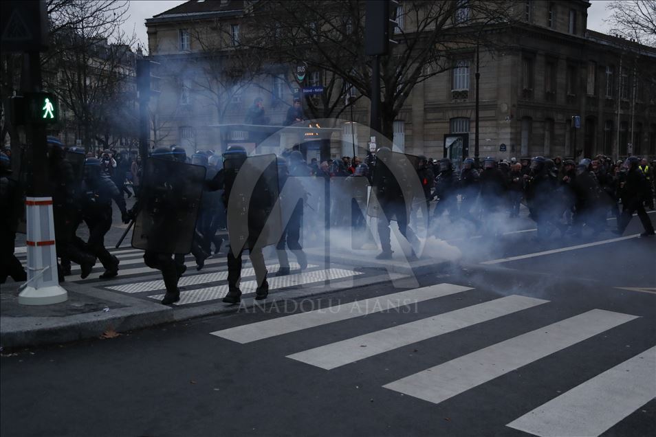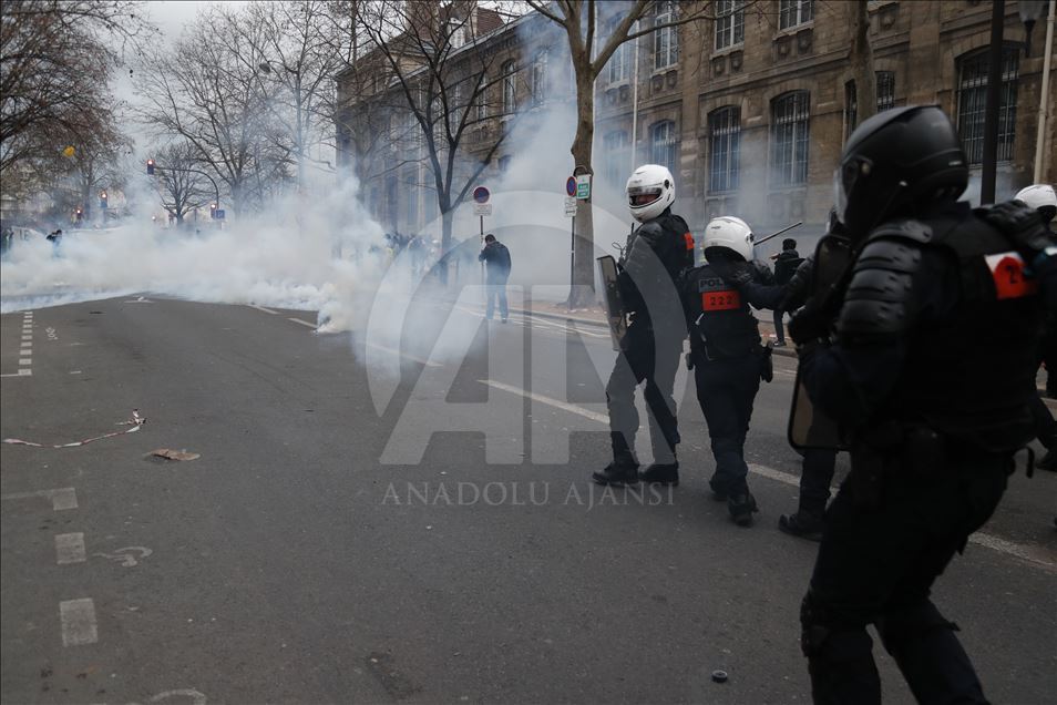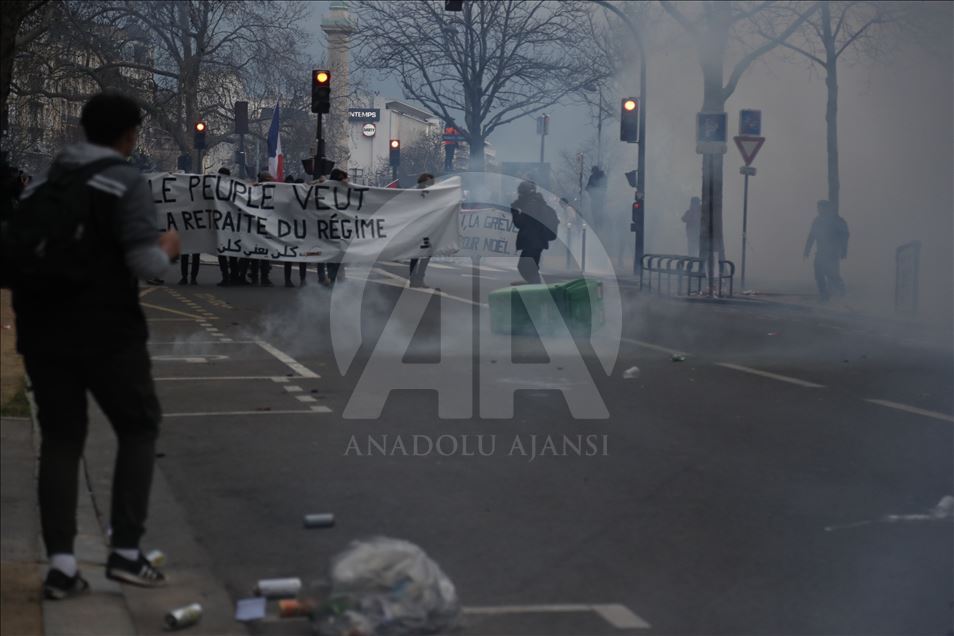 Fransa'da Cumhurbaşkanı Emmanuel Macron yönetiminin emeklilik reformuna karşı başlatılan grevler 13. gününe girdi. Grevler nedeniyle Paris'te ve çeşitli kentlerde sağlık, kamu ve ulaşım hizmetlerinde ciddi aksamalar yaşanıyor. Polis, göstericilere göz yaşartıcı gaz kapsülleri ile müdahale etti. ( Zakaria Abdelkafi - Anadolu Ajansı )Zakaria Abdelkafi