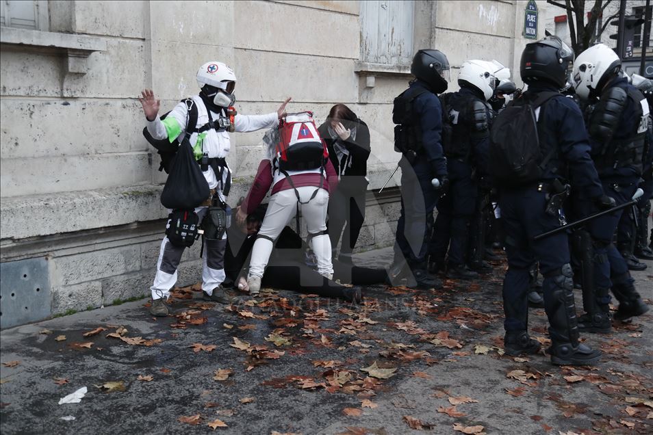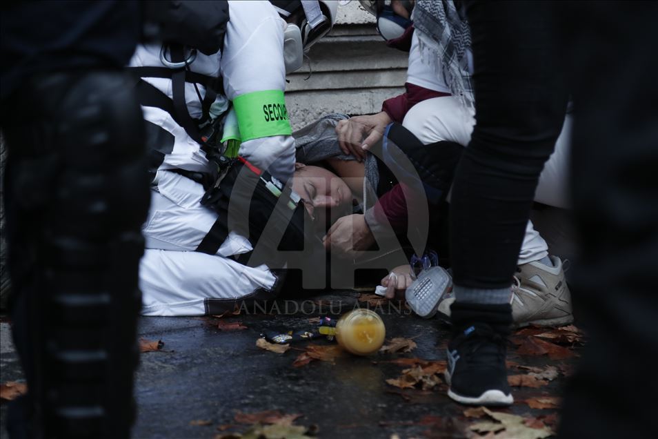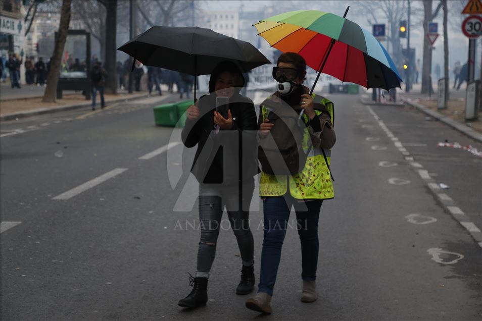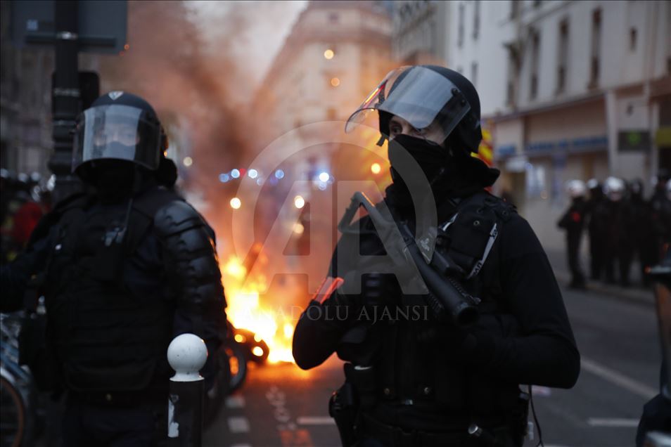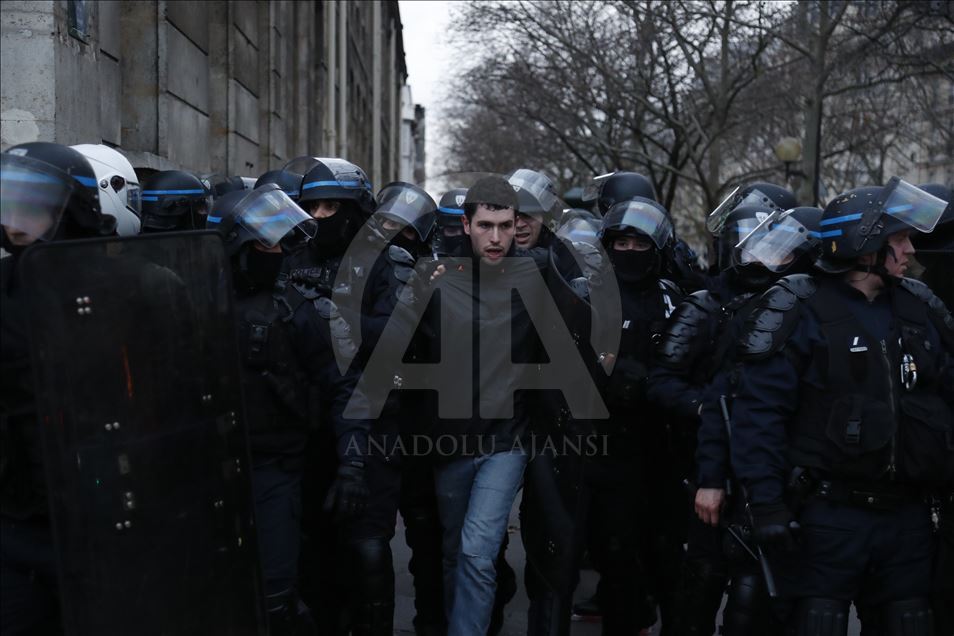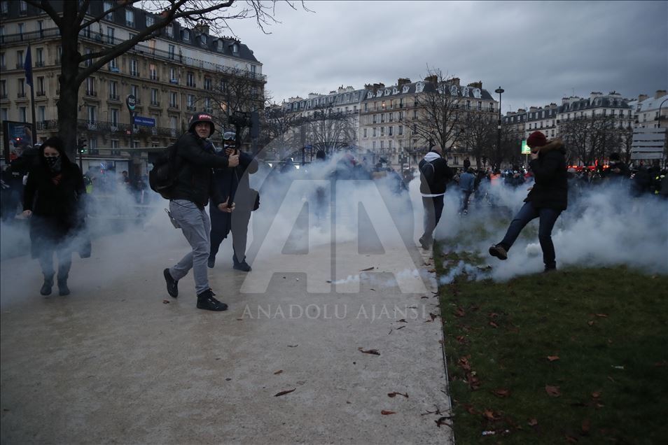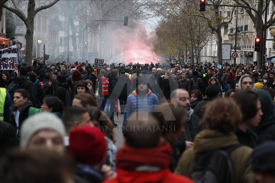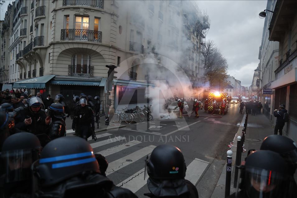 Fransa'da Cumhurbaşkanı Emmanuel Macron yönetiminin emeklilik reformuna karşı başlatılan grevler 13. gününe girdi. Grevler nedeniyle Paris'te ve çeşitli kentlerde sağlık, kamu ve ulaşım hizmetlerinde ciddi aksamalar yaşanıyor. Polis, göstericilere göz yaşartıcı gaz kapsülleri ile müdahale etti. ( Zakaria Abdelkafi - Anadolu Ajansı )Zakaria Abdelkafi