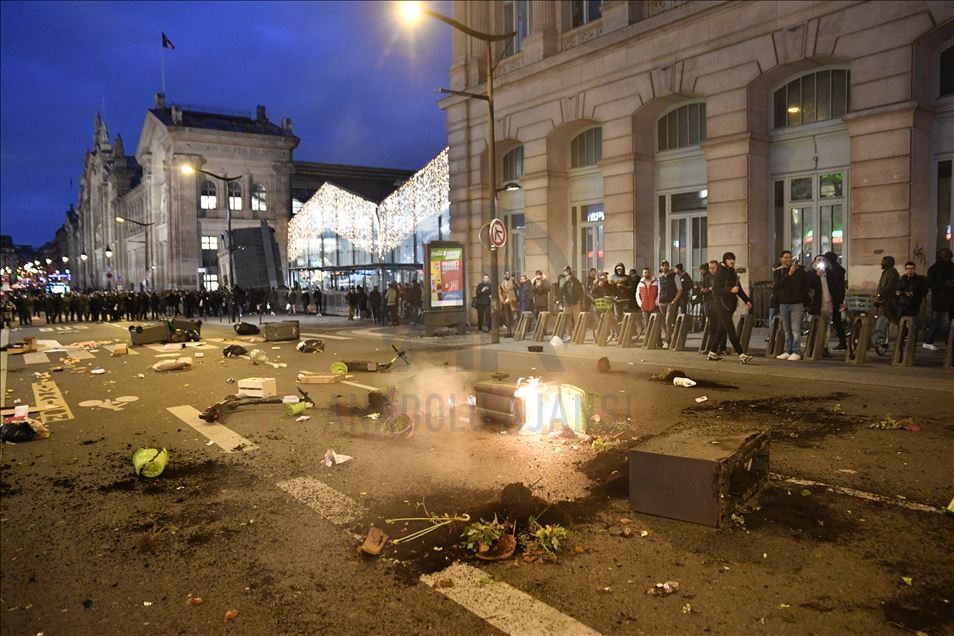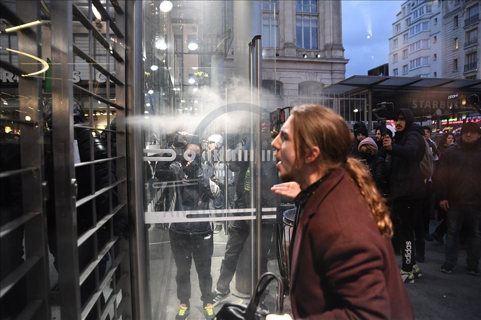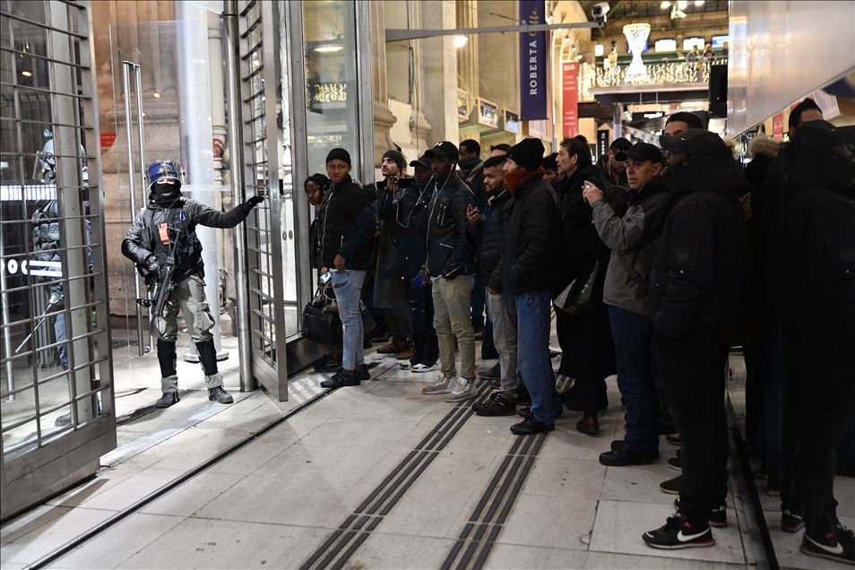 Fransa'da Cumhurbaşkanı Emmanuel Macron yönetiminin emeklilik reformuna karşı başlatılan grevler 31'inci gününe girdi. Genel Emek Konfederasyonu'nun (CGT) çağrısıyla başkent Paris'te düzenlenen gösteriye çok sayıda kişi katıldı. Gare du Nord terminalini dolduran göstericilere güvenlik güçleri müdahale etti. ( Julien Mattia - Anadolu Ajansı )Julien Mattia