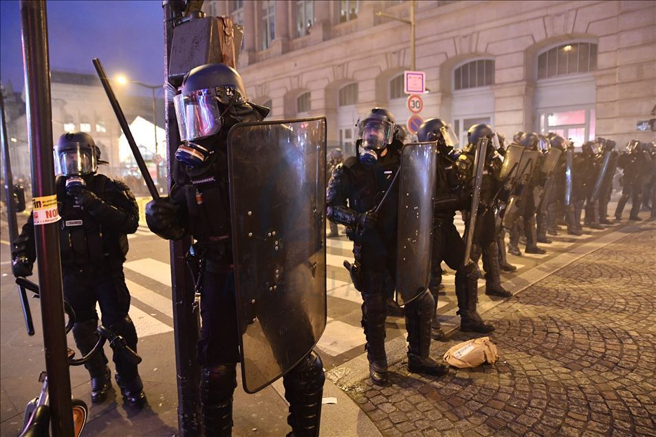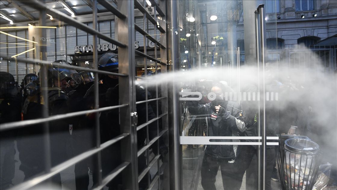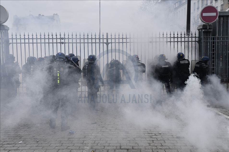 Fransa'da Cumhurbaşkanı Emmanuel Macron yönetiminin emeklilik reformuna karşı başlatılan grevler 31'inci gününe girdi. Genel Emek Konfederasyonu'nun (CGT) çağrısıyla başkent Paris'te düzenlenen gösteriye çok sayıda kişi katıldı. Güvenlik güçleri göstericilere müdahale etti. ( Julien Mattia - Anadolu Ajansı )Julien Mattia