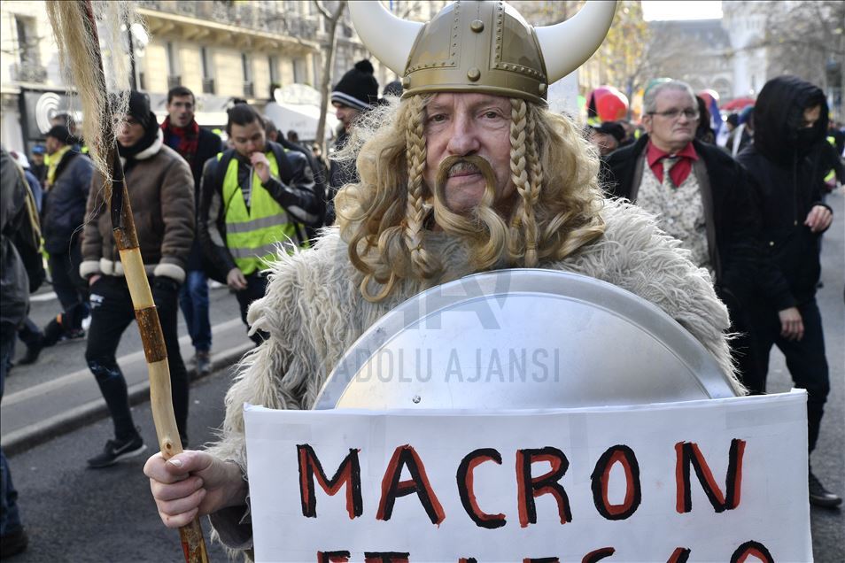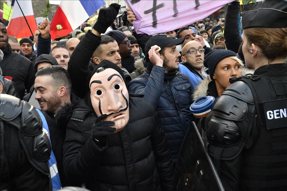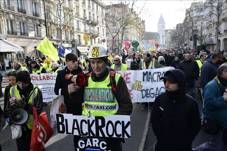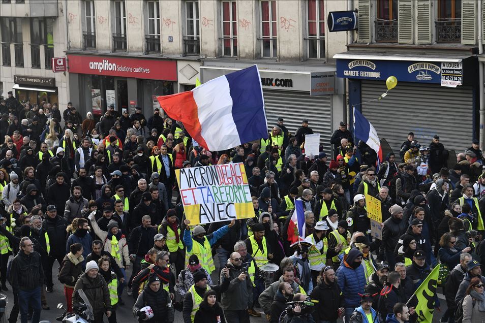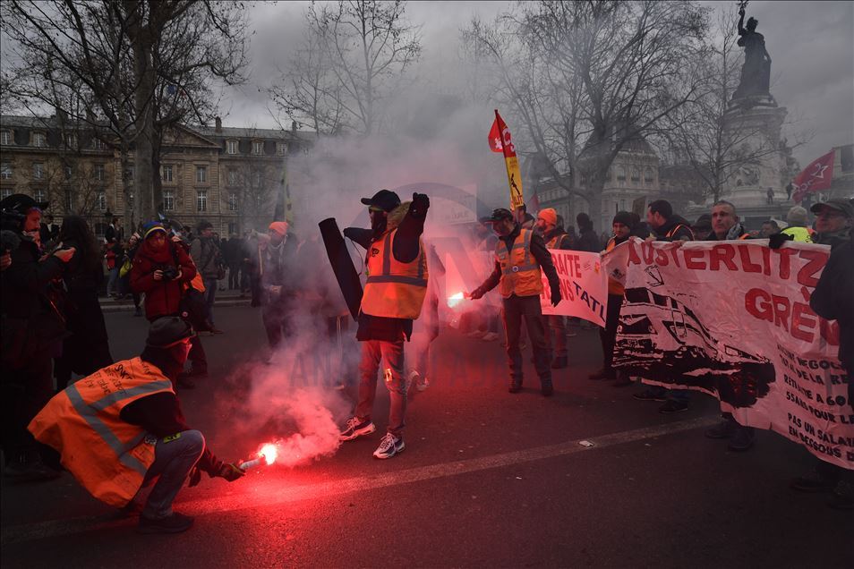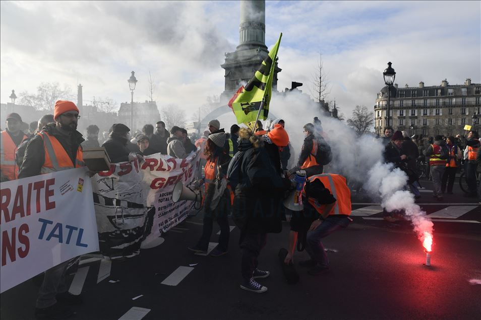 Fransa'da Cumhurbaşkanı Emmanuel Macron yönetiminin emeklilik reformuna karşı başlatılan grevler 31'inci gününe girdi. Genel Emek Konfederasyonu'nun (CGT) çağrısıyla başkent Paris'te düzenlenen gösteriye sarı yelekliler de katıldı. ( Julien Mattia - Anadolu Ajansı )Julien Mattia