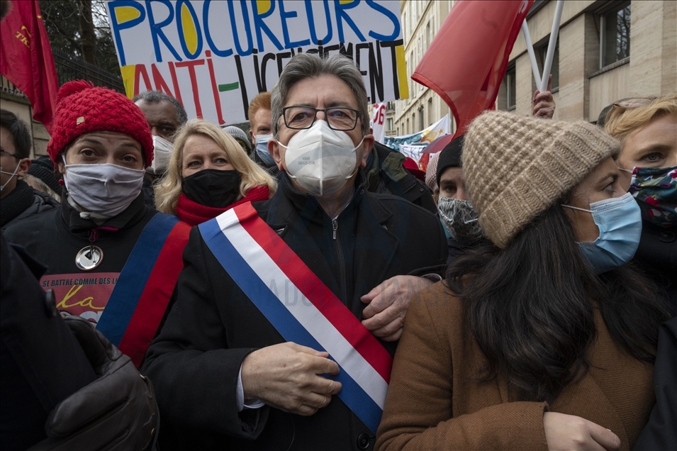 Fransa'da tartışmalı güvenlik yasa tasarısı ve yeni tip koronavirüs (Kovid-19) salgını döneminde kamuda işten çıkarmalara karşı gösteri düzenlendi. Paris'te Ulusal Meclis'te toplanan binlerce eylemci, Fransız İş Adamı ve Sanayiciler Örgütü (MEDEF) binasına kadar yürüdü. Gösteride aşırı solcu Boyun Eğmeyen Fransa Hareketi'nin (LFI) lideri ve Cumhurbaşkanı adayı Jean-Luc Melenchon da yer aldı. ( Julien Mattia - Anadolu Ajansı )Julien Mattia