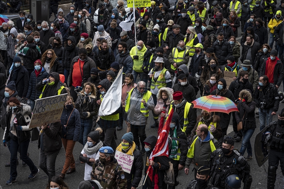 Fransa'da tartışmalı güvenlik yasa tasarısı ve yeni tip koronavirüs (Kovid-19) salgını döneminde kamuda işten çıkarmalara karşı gösteri düzenlendi.