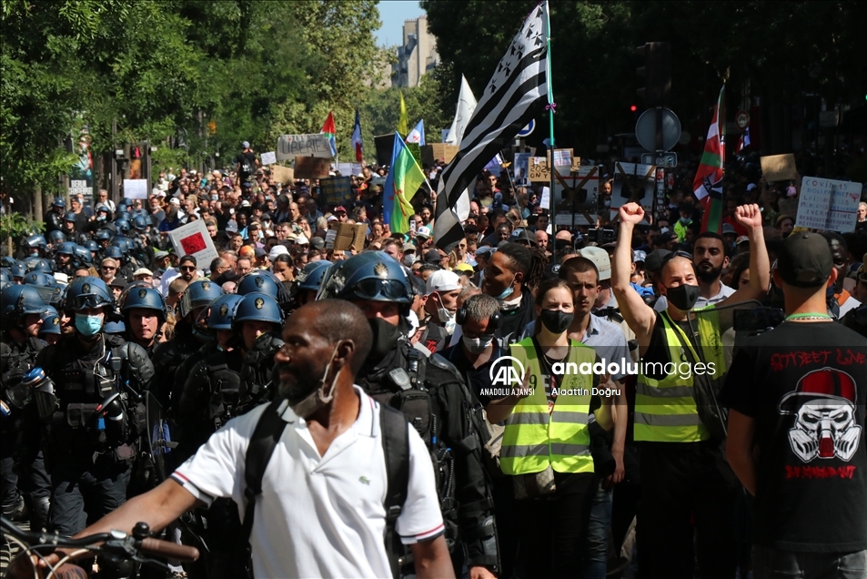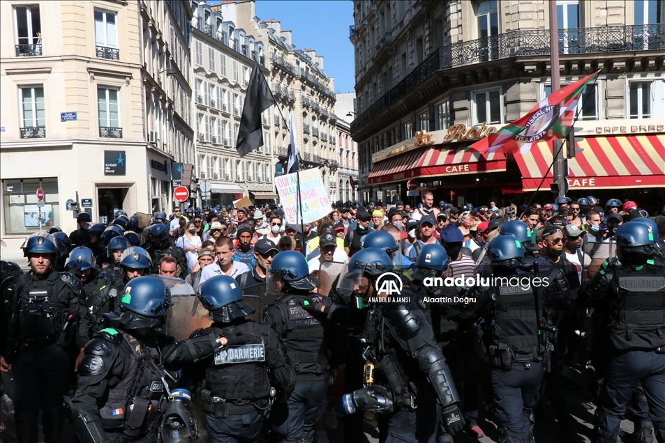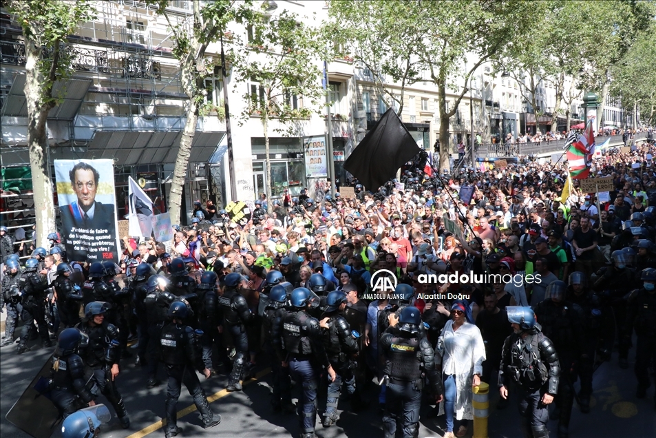 Fransa'da Kovid-19 ile mücadele karşıtı protestolar 5. haftasında artarak sürüyor