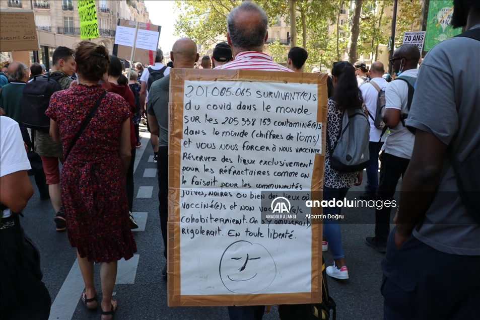 Fransa'da Anayasa Konseyinin onaylamasıyla 9 Ağustos'ta yürürlüğe giren yeni tip koronavirüs yasasının getirdiği kısıtlamalara ve aşı zorunluluğuna karşı çıkan yüz binlerce kişi, protesto gösterilerini 5 haftadır sürdürüyor.