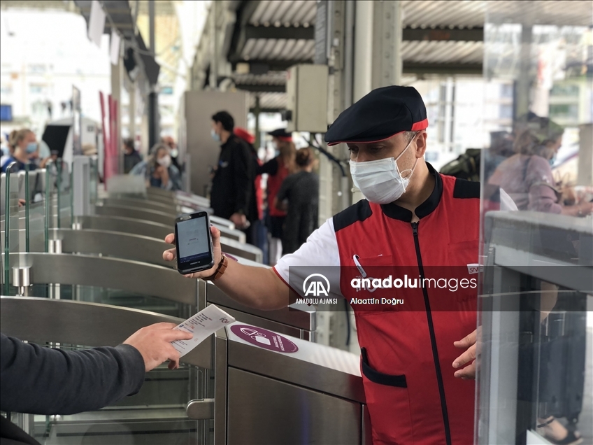 Fransa’da bölgeler arası yolculuklar, hastane, restoran, kafeterya, sinema salonları, müzeler ve alışveriş merkezleri hariç 50 kişiden fazla kapasiteli kapalı mekanlar ile eğlence parklarına giriş için zorunlu tutulan “Kovid-19 sağlık ruhsatı” uygulaması başladı. Uygulamada, bu mekan ve etkinliklere girişlerde Kovid-19 aşılarını tamamlayan, son 72 saatte yapılmış negatif PCR testi olan, ya da son 6 ayda hastalığa yakalanıp iyileşenlere verilen karekod okutuluyor. ( Alaattin Doğru - Anadolu Ajansı )Alaattin Doğru